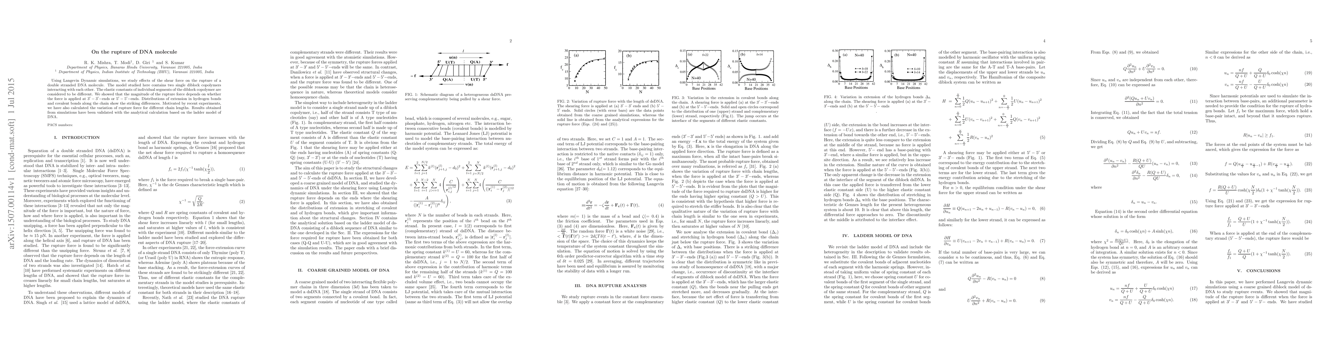 Research using Langevin Dynamic simulations reveals that applying shear force to DNA at different ends affects its rupture force, with distinct differences in hydrogen bond and covalent bond extension patterns.