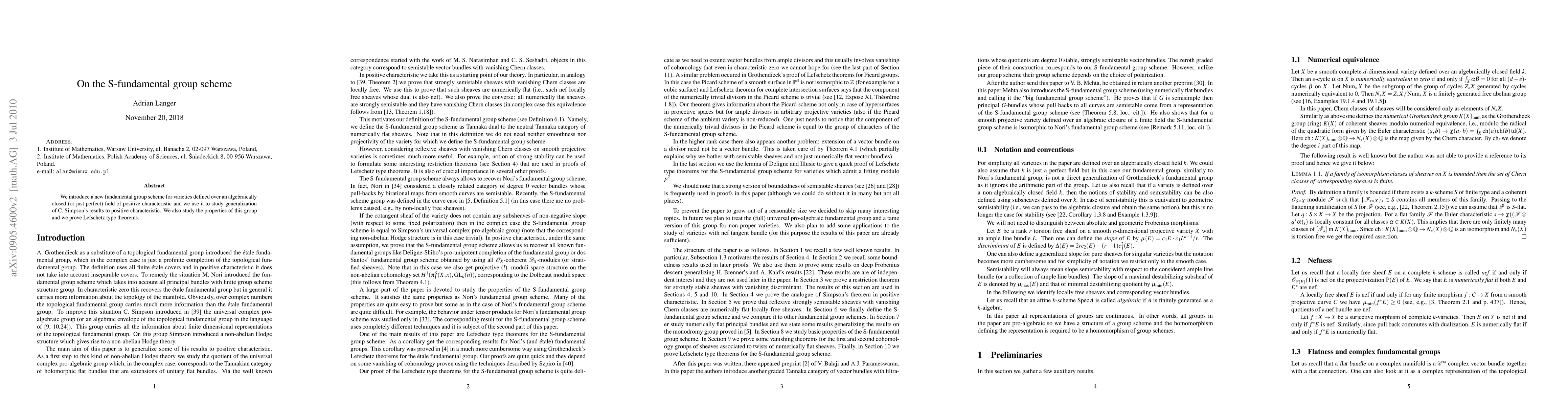 The paper introduces a new fundamental group scheme for varieties defined over an algebraically closed field of positive characteristic, utilizing it to generalize some of C. Simpson's results and proving Lefschetz type theorems.