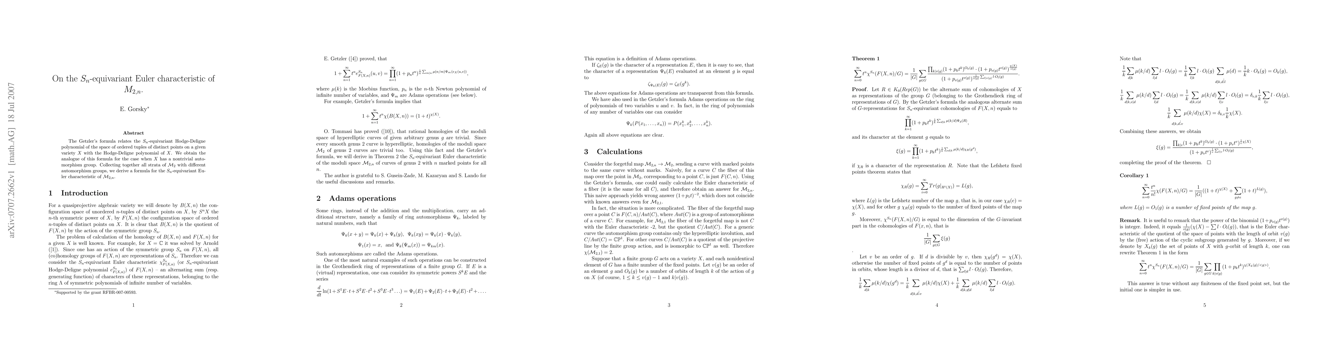 The Getzler's formula relates the S_n-equivariant Hodge-Deligne polynomial of the space of ordered tuples of distinct points on a given variety X with the Hodge-Deligne polynomial of X. We obtain the analogue of this formula for the case when X has a nontrivial automorphism group. Collecting together all strata of $\mathcal{M}_2$ with different automorphism groups, we derive a formula for the S_n-equivariant Euler characteristic of $\mathcal{M}_{2,n}$.
