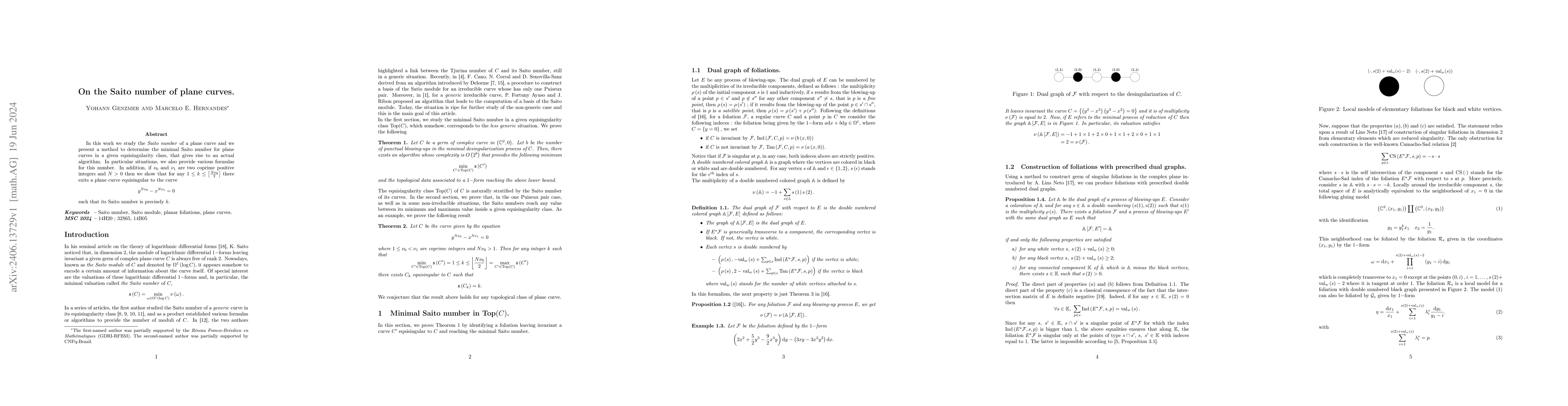 This paper investigates the Saito number of plane curves, presenting an algorithm to find the minimal Saito number within a given equisingularity class and providing formulas for specific cases. It also proves the existence of plane curves with prescribed Saito numbers relative to coprime integers and a given parameter.