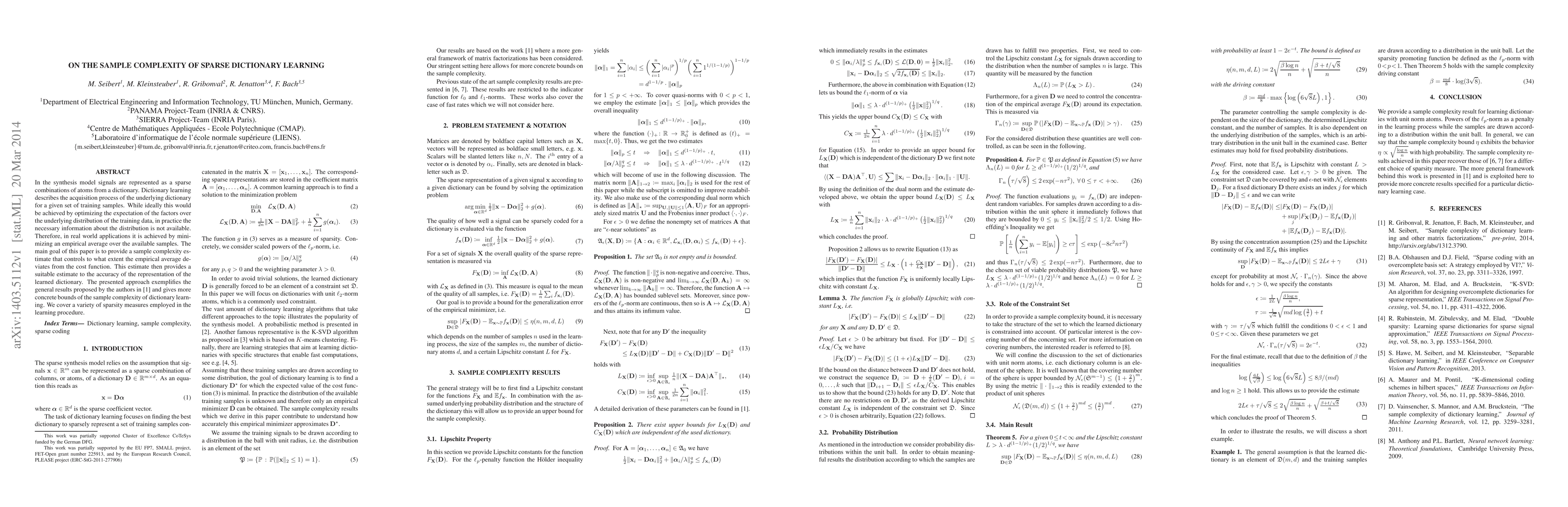 This paper investigates the sample complexity of sparse dictionary learning in the synthesis model, providing estimates on how well empirical averages approximate the true cost function. It offers concrete bounds on the sample complexity and applies various sparsity measures to achieve accurate dictionary representations.