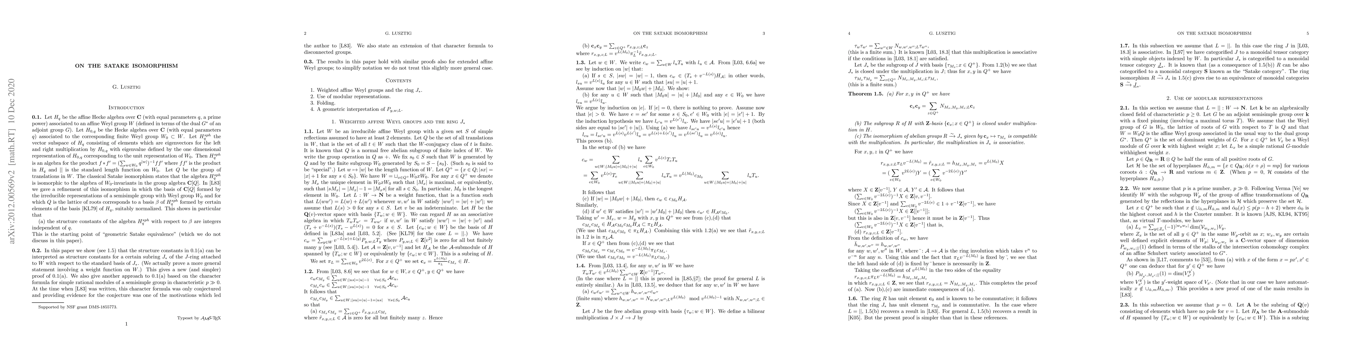 In a 1983 paper the author has established a (decategorified) Satake equivalence for affine Hecke algebras. In this paper we give new proofs for some results of that paper, one based on the theory of J-rings and one based on the known character formula for rational representations of a reductive group in positive, large, characteristic. We also give an extension of that character formula to disconnected groups.