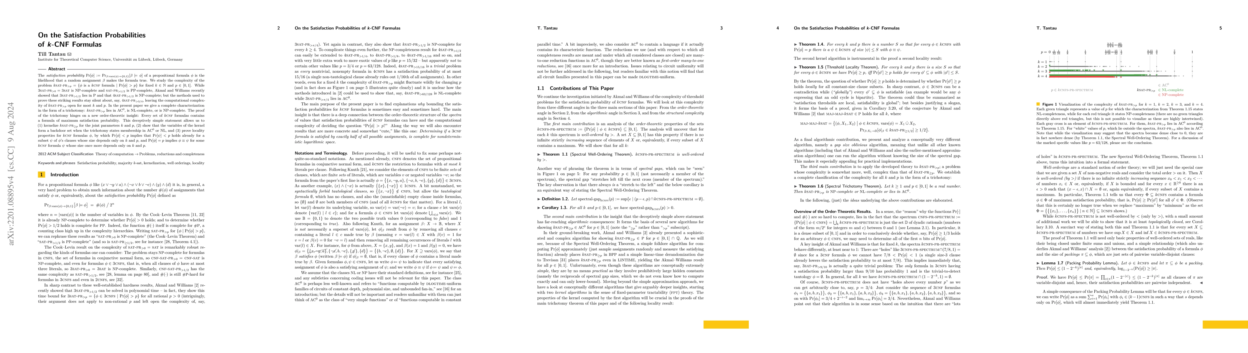 This paper studies the computational complexity of $k$SAT-PROB$_{>p}$, the problem of determining if a $k$CNF formula has a satisfaction probability greater than $p$. The authors provide a complete characterization of this problem, showing it lies in AC$^0$, is NL-complete, or NP-complete, depending on $k$ and $p$, using a novel order-theoretic insight.
