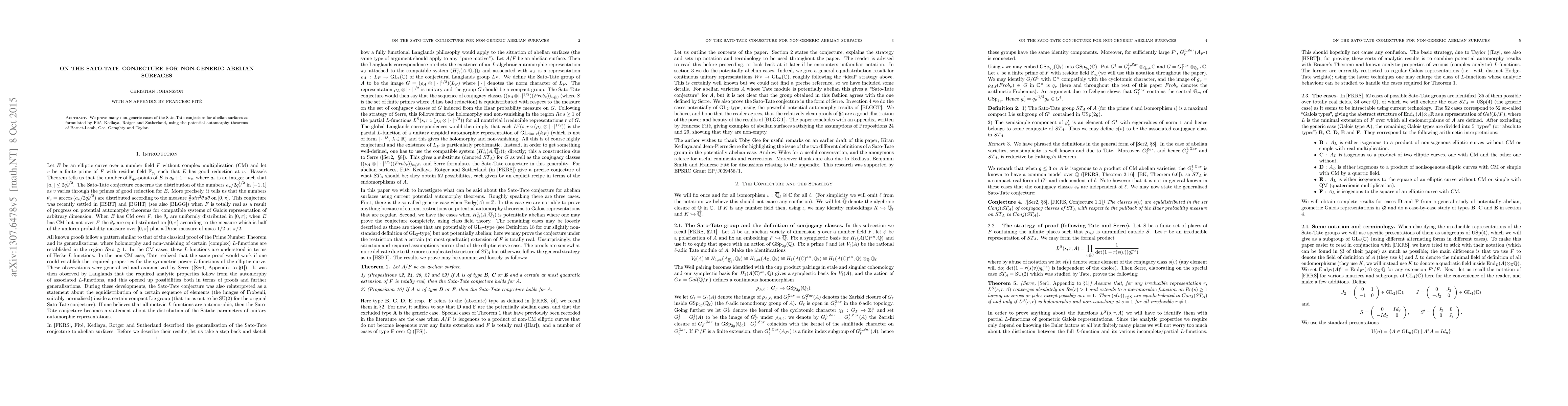 The paper proves numerous non-generic instances of the Sato-Tate conjecture for abelian surfaces, employing the potential automorphy theorems to achieve its results. This contributes significantly to the understanding of the distribution of eigenvalues in these surfaces.