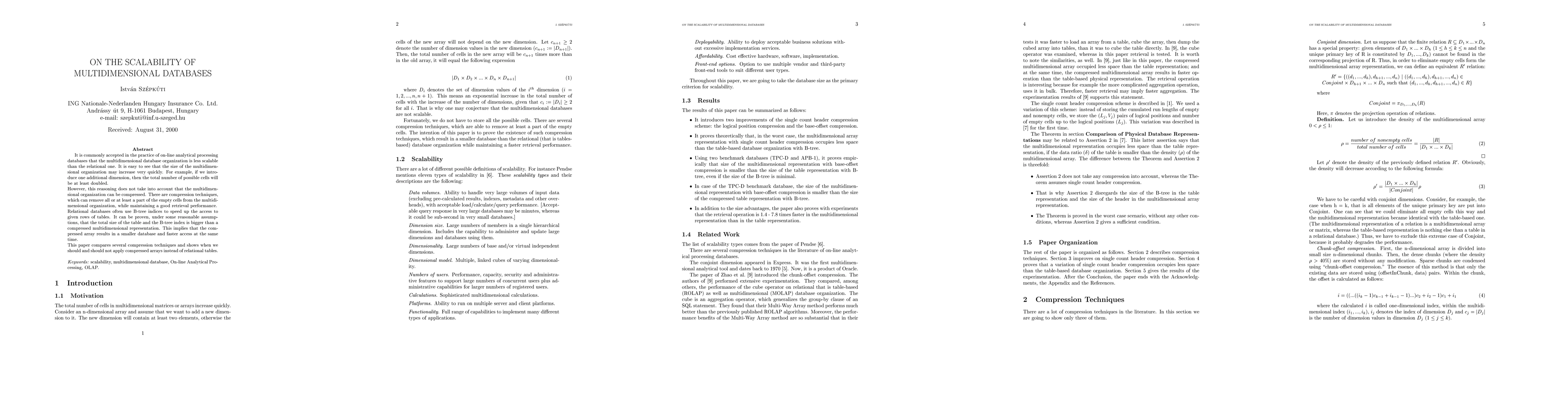 This paper investigates the scalability of multidimensional databases compared to relational databases, demonstrating that compression techniques can effectively reduce the size of multidimensional arrays while maintaining retrieval performance. It concludes that under certain conditions, compressed multidimensional arrays can outperform relational tables with B-tree indices in terms of both size and access speed.