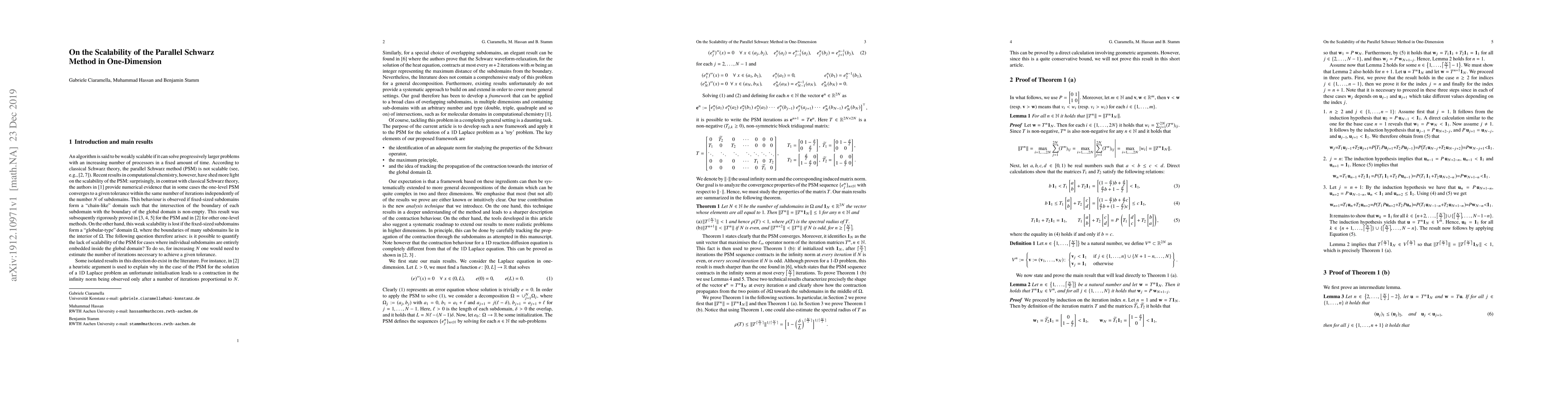 In contrast with classical Schwarz theory, recent results in computational chemistry have shown that for special domain geometries, the one-level parallel Schwarz method can be scalable. This property is not true in general, and the issue of quantifying the lack of scalability remains an open problem. Even though heuristic explanations are given in the literature, a rigorous and systematic analysis is still missing. In this short manuscript, we provide a first rigorous result that precisely quantifies the lack of scalability of the classical one-level parallel Schwarz method for the solution to the one-dimensional Laplace equation. Our analysis technique provides a possible roadmap for a systematic extension to more realistic problems in higher dimensions.