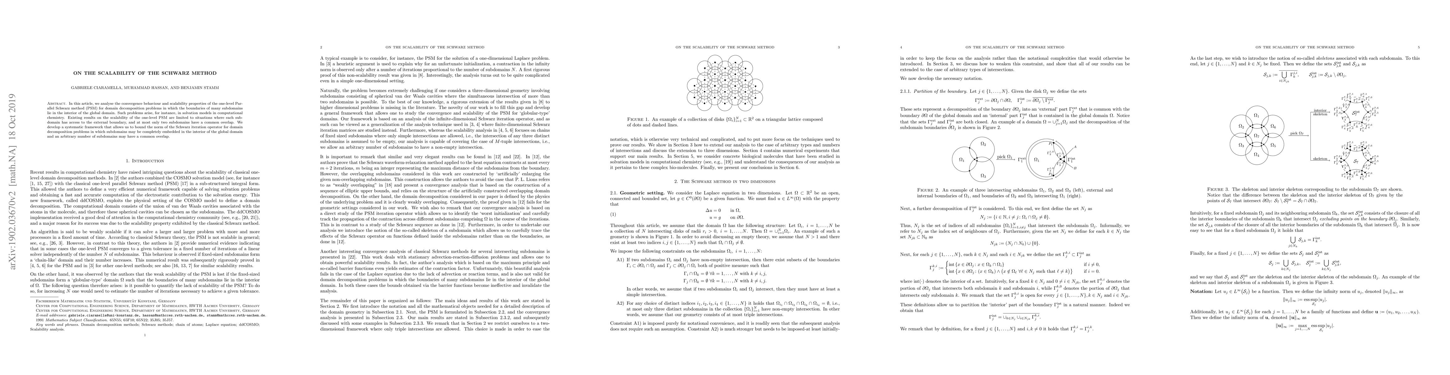 In this article, we analyse the convergence behaviour and scalability properties of the one-level Parallel Schwarz method (PSM) for domain decomposition problems in which the boundaries of many subdomains lie in the interior of the global domain. Such problems arise, for instance, in solvation models in computational chemistry. Existing results on the scalability of the one-level PSM are limited to situations where each subdomain has access to the external boundary, and at most only two subdomains have a common overlap. We develop a systematic framework that allows us to bound the norm of the Schwarz iteration operator for domain decomposition problems in which subdomains may be completely embedded in the interior of the global domain and an arbitrary number of subdomains may have a common overlap.