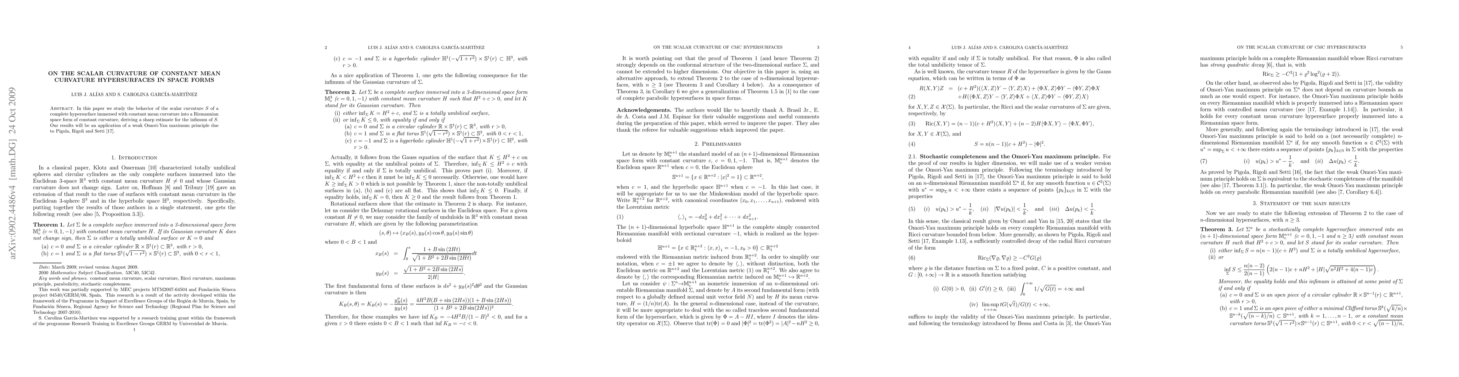 This paper explores the scalar curvature $S$ of complete hypersurfaces with constant mean curvature in Riemannian space forms of constant curvature, deriving a sharp estimate for the infimum of $S$ using a weak Omori-Yau maximum principle.