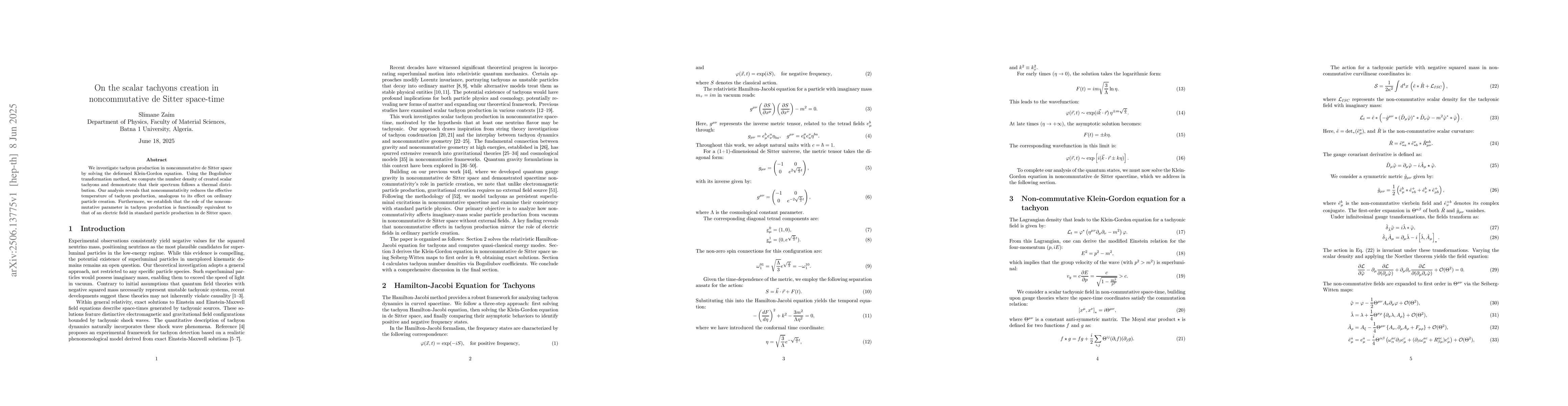 We investigate tachyon production in noncommutative de Sitter space by solving the deformed Klein-Gordon equation. Using the Bogoliubov transformation method, we compute the number density of created scalar tachyons and demonstrate that their spectrum follows a thermal distribution. Our analysis reveals that noncommutativity reduces the effective temperature of tachyon production, analogous to its effect on ordinary particle creation. Furthermore, we establish that the role of the noncommutative parameter in tachyon production is functionally equivalent to that of an electric field in standard particle production in de Sitter space.
