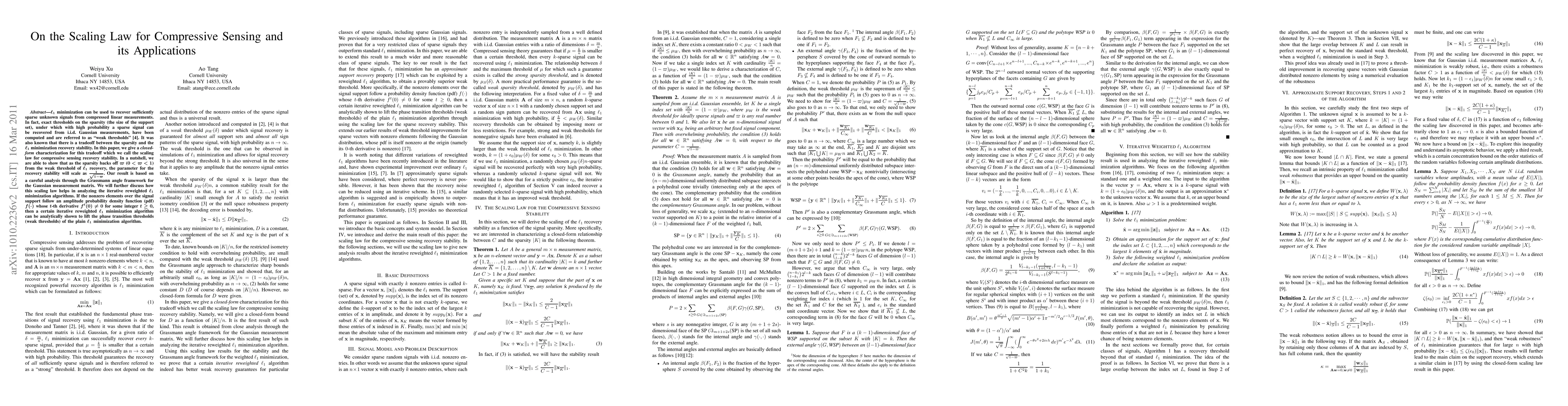 $\ell_1$ minimization can be used to recover sufficiently sparse unknown signals from compressed linear measurements. In fact, exact thresholds on the sparsity (the size of the support set), under which with high probability a sparse signal can be recovered from i.i.d. Gaussian measurements, have been computed and are referred to as "weak thresholds" \cite{D}. It was also known that there is a tradeoff between the sparsity and the $\ell_1$ minimization recovery stability. In this paper, we give a \emph{closed-form} characterization for this tradeoff which we call the scaling law for compressive sensing recovery stability. In a nutshell, we are able to show that as the sparsity backs off $\varpi$ ($0<\varpi<1$) from the weak threshold of $\ell_1$ recovery, the parameter for the recovery stability will scale as $\frac{1}{\sqrt{1-\varpi}}$. Our result is based on a careful analysis through the Grassmann angle framework for the Gaussian measurement matrix. We will further discuss how this scaling law helps in analyzing the iterative reweighted $\ell_1$ minimization algorithms. If the nonzero elements over the signal support follow an amplitude probability density function (pdf) $f(\cdot)$ whose $t$-th derivative $f^{t}(0) \neq 0$ for some integer $t \geq 0$, then a certain iterative reweighted $\ell_1$ minimization algorithm can be analytically shown to lift the phase transition thresholds (weak thresholds) of the plain $\ell_1$ minimization algorithm.
