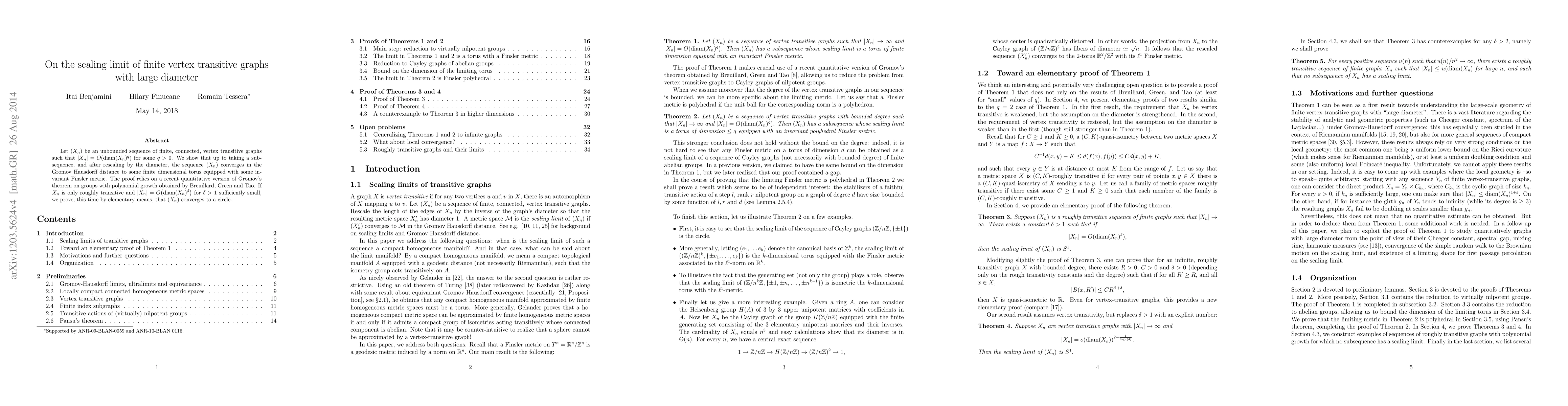 A sequence of finite vertex transitive graphs with large diameter converges to a torus or circle under specific conditions, according to the paper.