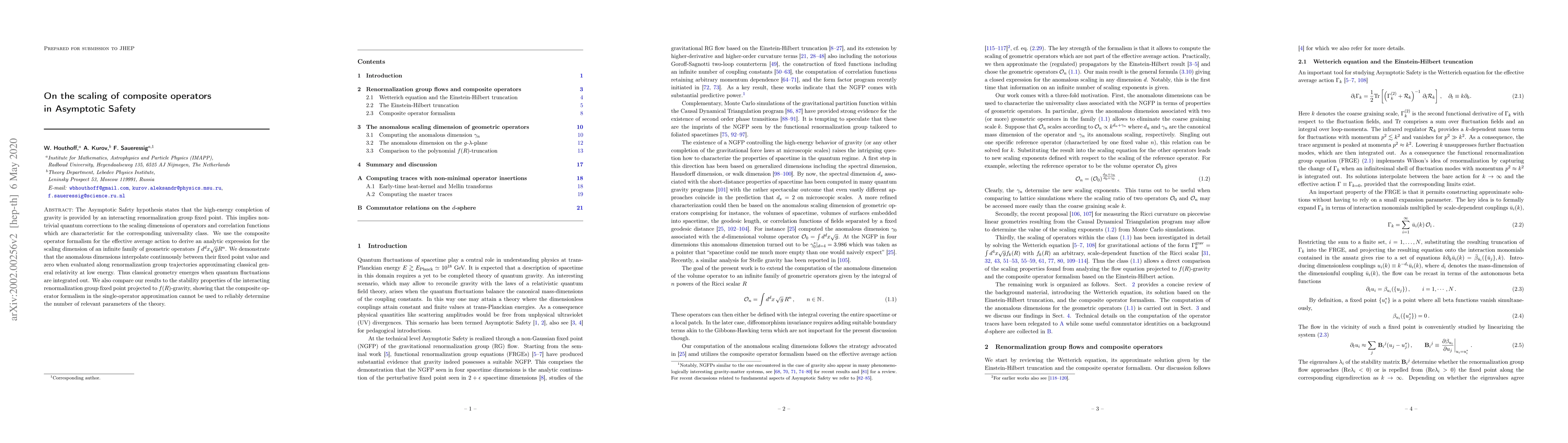 This paper explores the scaling of composite operators in the context of Asymptotic Safety, deriving an analytic expression for the scaling dimension of geometric operators. It finds that classical geometry emerges from quantum fluctuations, but warns that the composite operator formalism cannot reliably determine the number of relevant parameters in the theory.