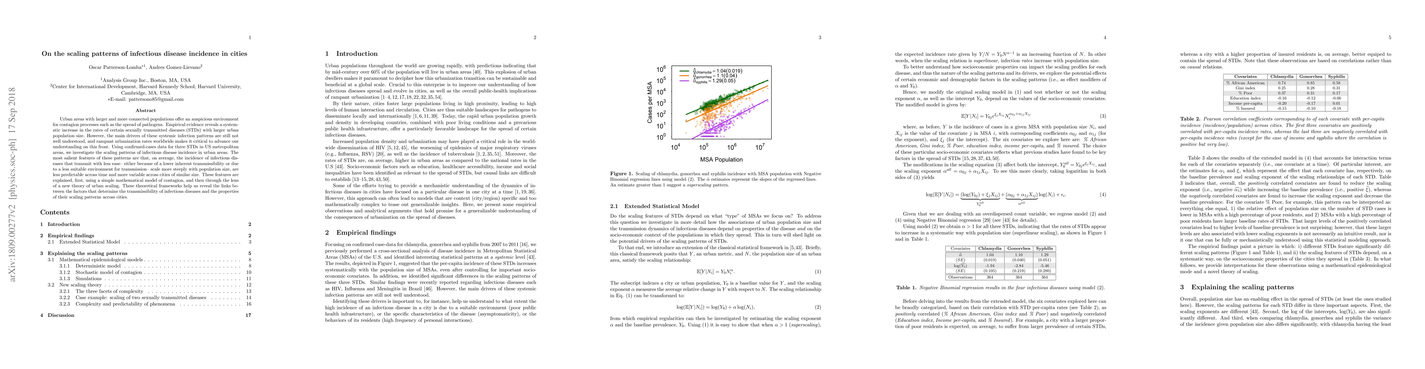 The research uses confirmed-cases data for three STDs in US metropolitan areas, employing a mathematical model of contagion (SIS model) and a new theory of urban scaling to investigate the scaling patterns of infectious disease incidence in urban areas.