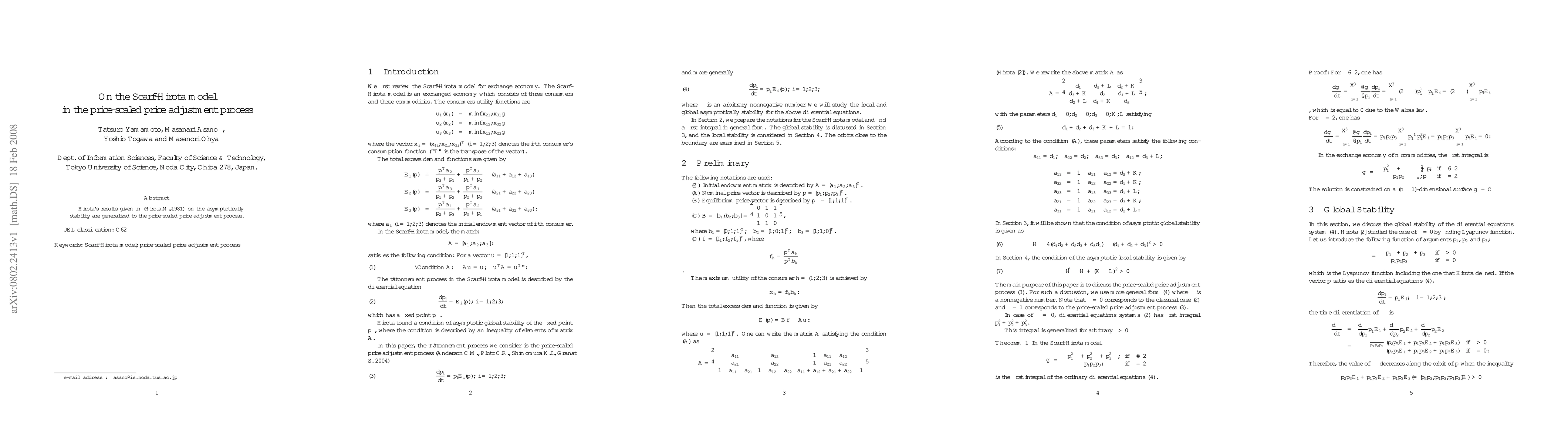 Hirota's results given in (Hirota.M.,1981) on the asymptotically stability are generalized to the price-scaled price adjustment process.