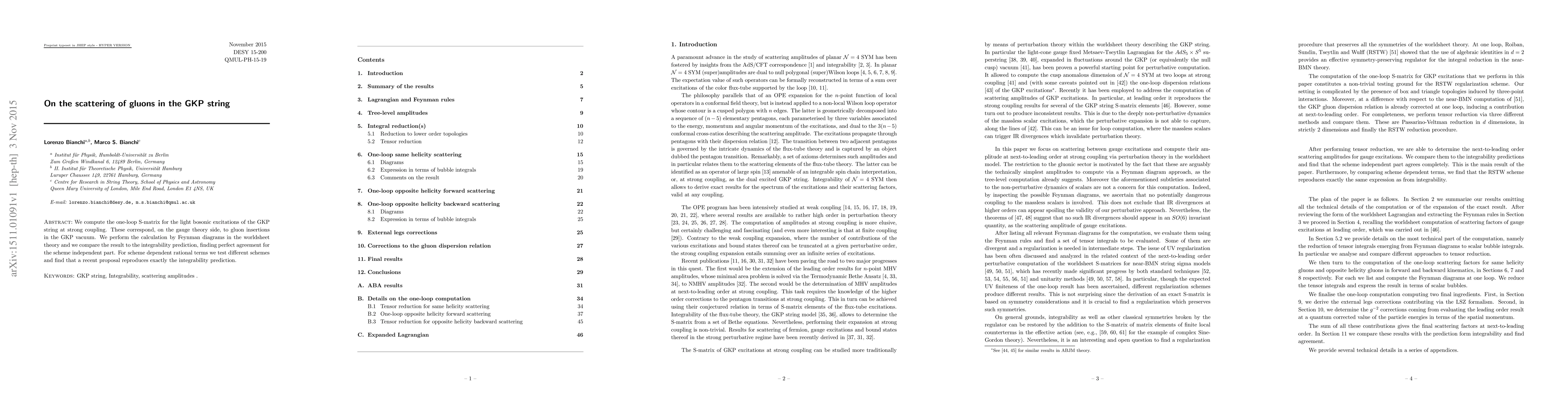 We compute the one-loop S-matrix for the light bosonic excitations of the GKP string at strong coupling. These correspond, on the gauge theory side, to gluon insertions in the GKP vacuum. We perform the calculation by Feynman diagrams in the worldsheet theory and we compare the result to the integrability prediction, finding perfect agreement for the scheme independent part. For scheme dependent rational terms we test different schemes and find that a recent proposal reproduces exactly the integrability prediction.