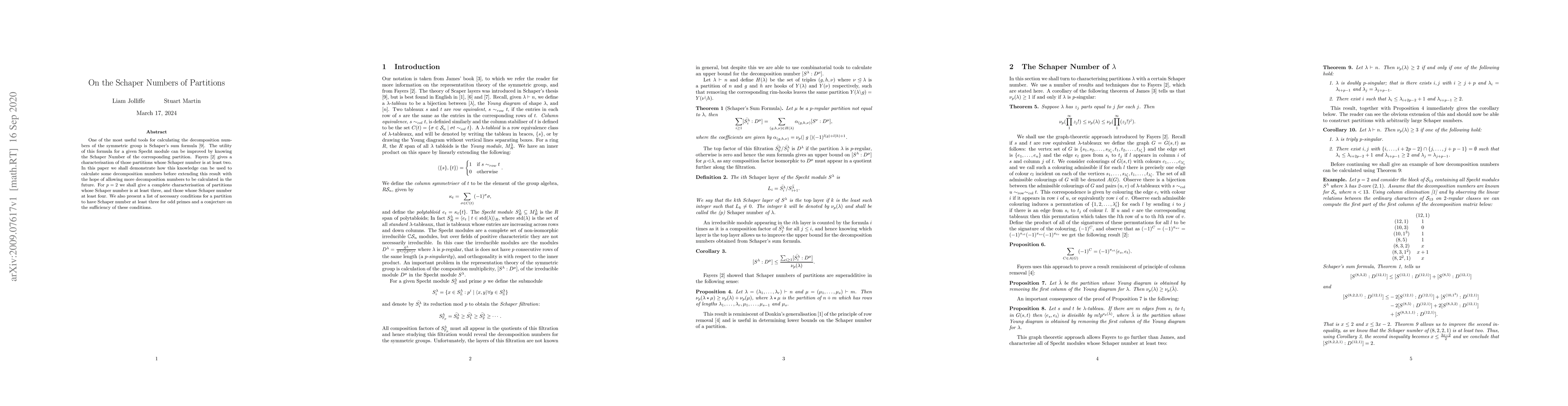 One of the most useful tools for calculating the decomposition numbers of the symmetric group is Schaper's sum formula. The utility of this formula for a given Specht module can be improved by knowing the Schaper Number of the corresponding partition. Fayers gives a characterisation of those partitions whose Schaper number is at least two. In this paper we shall demonstrate how this knowledge can be used to calculate some decomposition numbers before extending this result with the hope of allowing more decomposition numbers to be calculated in the future. For $p=2$ we shall give a complete characterisation of partitions whose Schaper number is at least three, and those whose Schaper number at least four. We also present a list of necessary conditions for a partition to have Schaper number at least three for odd primes and a conjecture on the sufficiency of these conditions.