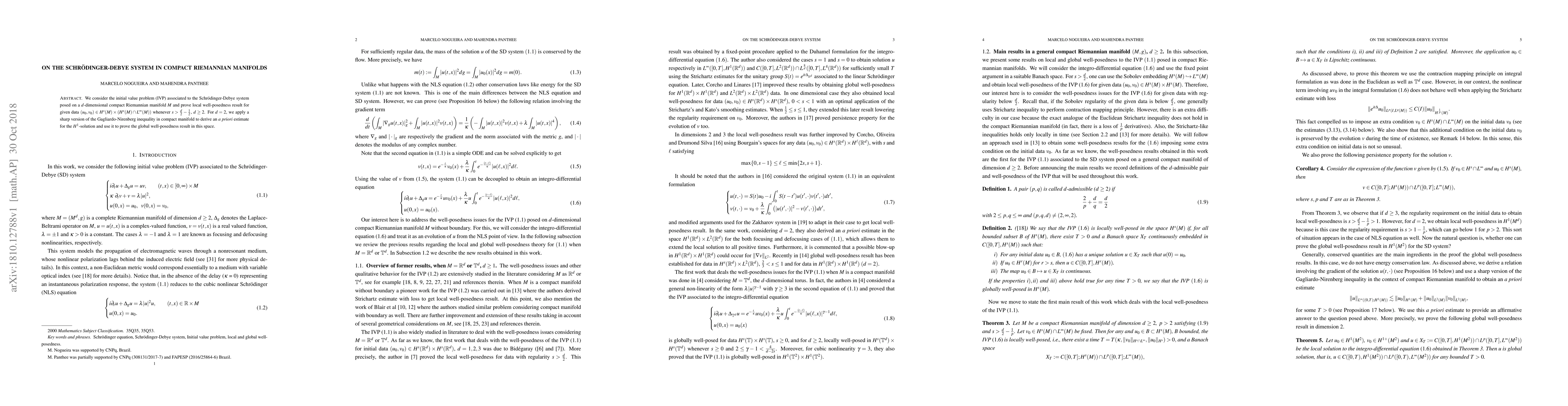 This paper proves local well-posedness for the Schrödinger-Debye system on compact Riemannian manifolds under initial data conditions. For $d=2$, it leverages a refined Gagliardo-Nirenberg inequality to establish global well-posedness in the $H^1$ space.