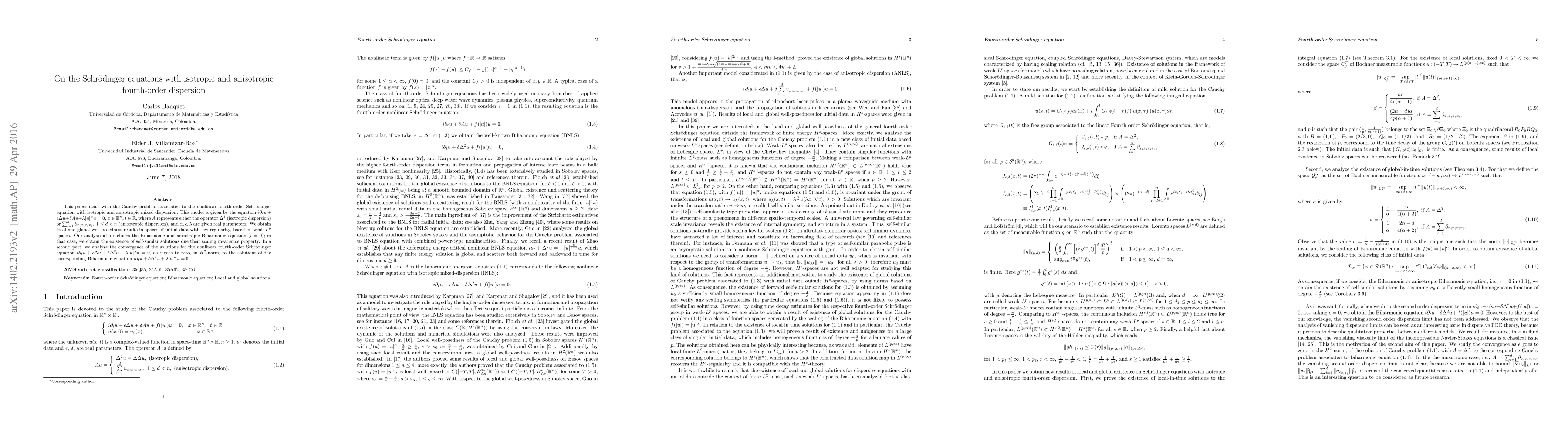 fourth-order Schr\"odinger equation with isotropic and anisotropic mixed