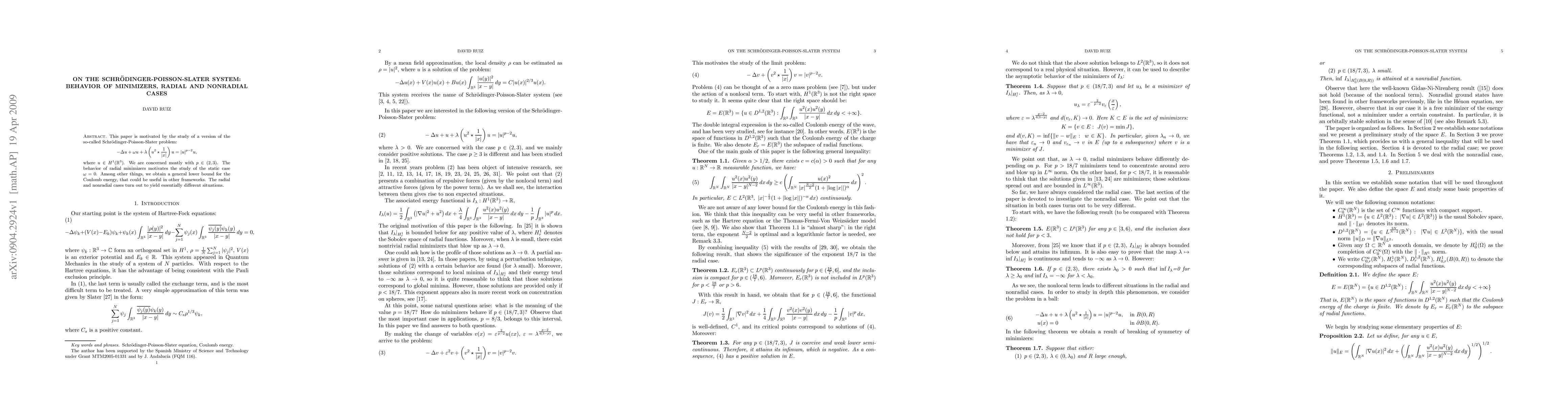This paper is motivated by the study of a version of the so-called Schrodinger-Poisson-Slater problem: $$ - \Delta u + \omega u + \lambda (u^2 \star \frac{1}{|x|}) u=|u|^{p-2}u,$$ where $u \in H^1(\R^3)$. We are concerned mostly with $p \in (2,3)$. The behavior of radial minimizers motivates the study of the static case $\omega=0$. Among other things, we obtain a general lower bound for the Coulomb energy, that could be useful in other frameworks. The radial and nonradial cases turn out to yield essentially different situations.