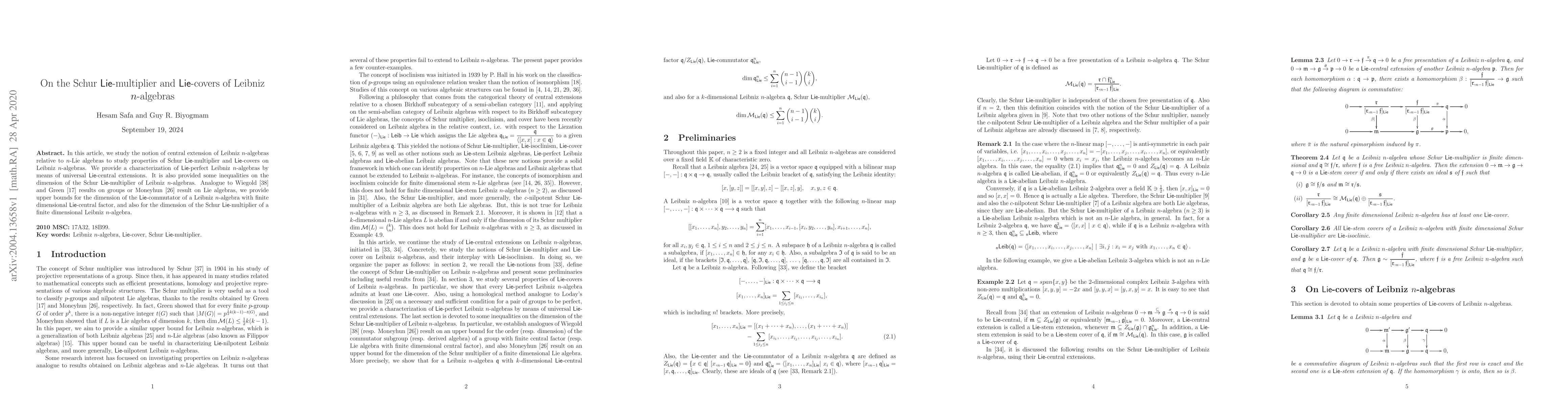 In this article, we study the notion of central extension of Leibniz $n$-algebras relative to $n$-Lie algebras to study properties of Schur $\mathsf{Lie}$-multiplier and $\mathsf{Lie}$-covers on Leibniz $n$-algebras. We provide a characterization of $\mathsf{Lie}$-perfect Leibniz $n$-algebras by means of universal $\mathsf{Lie}$-central extensions. It is also provided some inequalities on the dimension of the Schur $\mathsf{Lie}$-multiplier of Leibniz $n$-algebras. Analogue to Wiegold [38] and Green [17] results on groups or Moneyhun [26] result on Lie algebras, we provide upper bounds for the dimension of the $\mathsf{Lie}$-commutator of a Leibniz $n$-algebra with finite dimensional $\mathsf{Lie}$-central factor, and also for the dimension of the Schur $\mathsf{Lie}$-multiplier of a finite dimensional Leibniz $n$-algebra.
