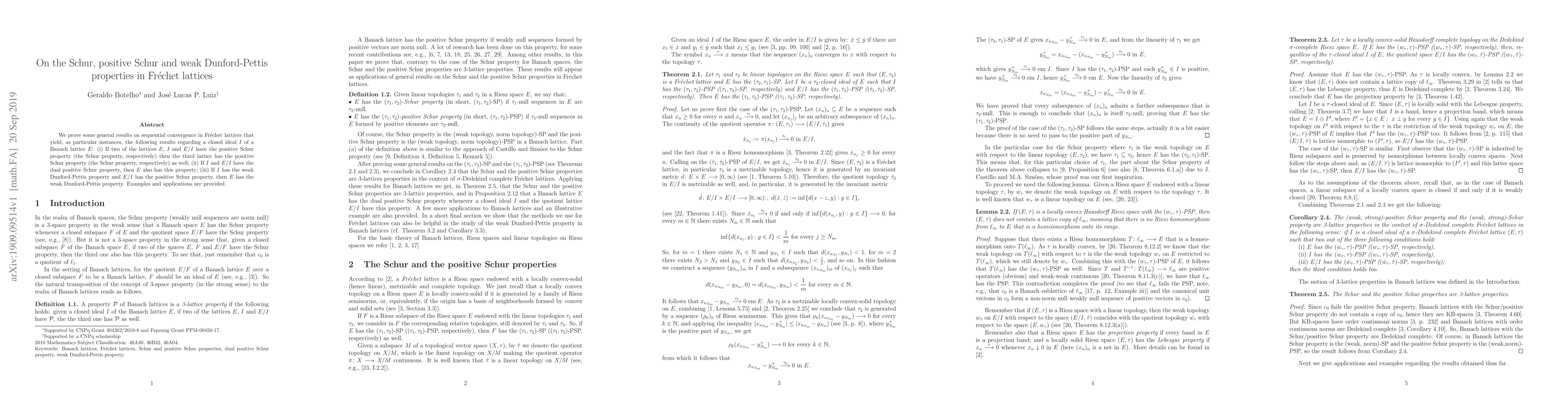 This paper proves general results on sequential convergence in Fréchet lattices, establishing that certain properties (positive Schur, Schur, and weak Dunford-Pettis) in closed ideals and quotient spaces of Banach lattices are preserved under specific conditions. Examples and applications illustrate the implications of these findings.