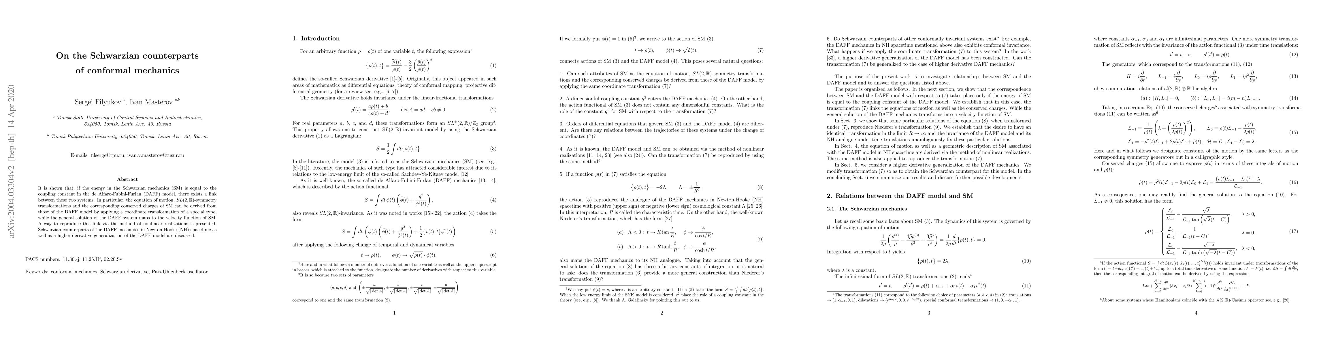 The paper presents a method to derive Schwarzian mechanics from the DAFF model through coordinate transformations and nonlinear realizations, extending to higher-derivative generalizations.