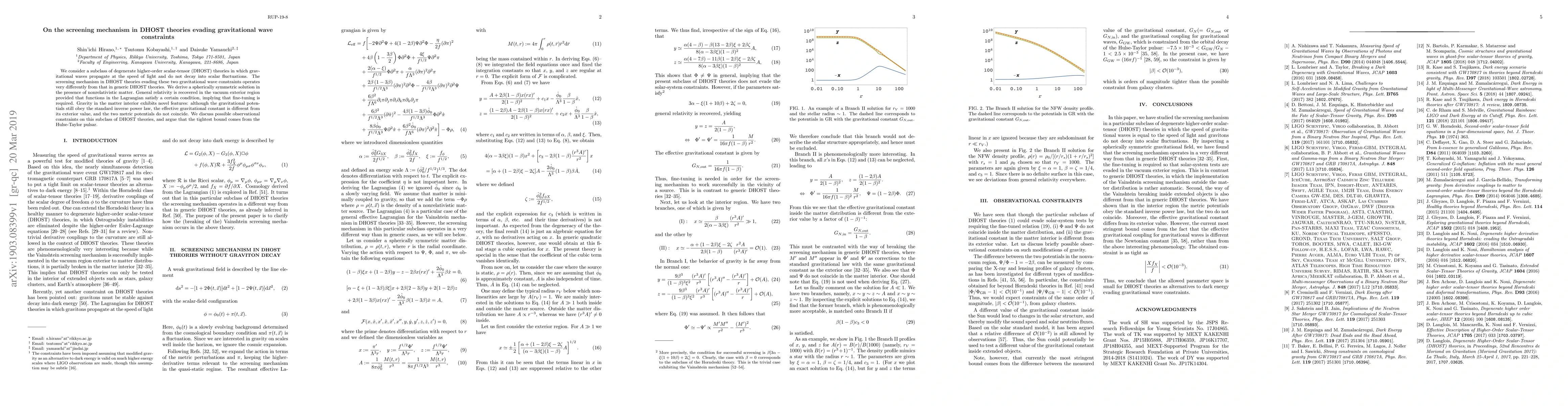 This paper explores a subclass of DHOST theories where gravitational waves propagate at the speed of light without decaying into scalar fluctuations. It reveals a unique screening mechanism that differs from generic DHOST theories, showing that general relativity is recovered in vacuum but requires fine-tuning, while gravity inside matter exhibits distinct gravitational potentials and an altered effective gravitational constant.
