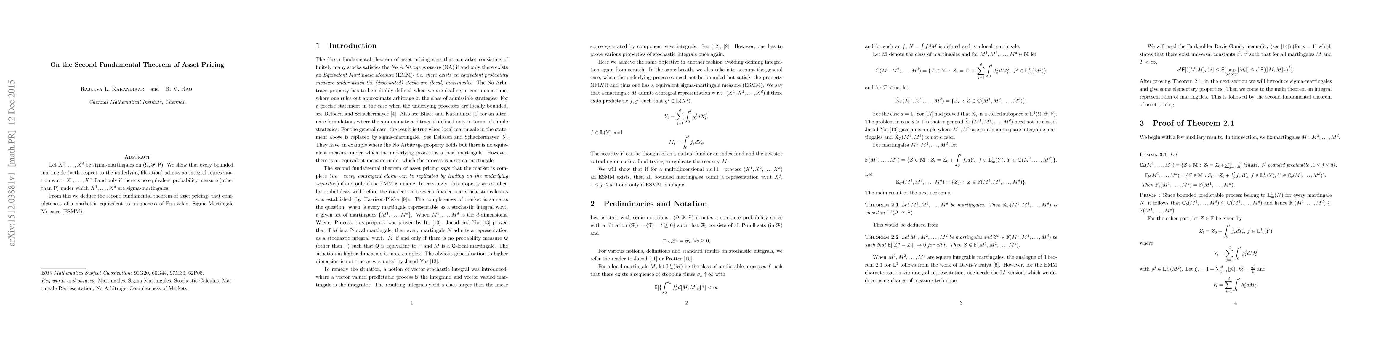 This paper proves the second fundamental theorem of asset pricing, showing that a market is complete if and only if there is a unique equivalent sigma-martingale measure, and that every bounded martingale can be represented as an integral with respect to given sigma-martingales if and only if no other equivalent probability measure exists under which these sigma-martingales remain valid.