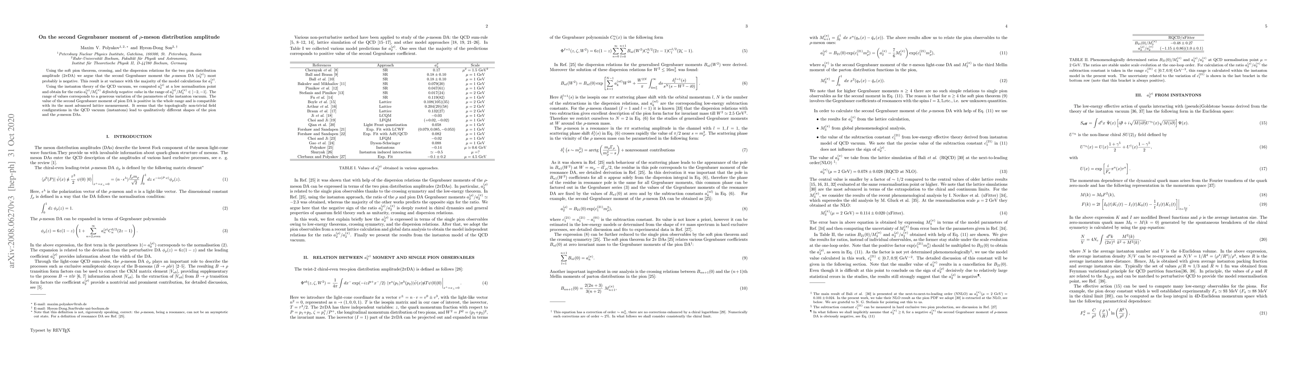 Using the soft pion theorem, crossing, and the dispersion relations for the two pion distribution amplitude ($2\pi$DA) we argue that the second Gegenbauer moment the $\rho$-meson DA ($a_2^{(\rho)}$) most probably is negative. This result is at variance with the majority of the model calculations for $a_2^{(\rho)}$. Using the instanton theory of the QCD vacuum, we computed $a_2^{(\rho)}$ at a low normalisation point and obtain for the ratio $ a_2^{(\rho)}/M_3^{(\pi)}$ {\it definitely negative value} in the range of $a_2^{(\rho)}/M_3^{(\pi)}\in [-2, -1]$. The range of values corresponds to a generous variation of the parameters of the instanton vacuum. The value of the second Gegenbauer moment of pion DA is positive in the whole range and is compatible with its the most advanced lattice measurement. It seems that the topologically non-trivial field configurations in the QCD vacuum (instantons) lead to qualitatively different shapes of the pion and the $\rho$-meson DAs.