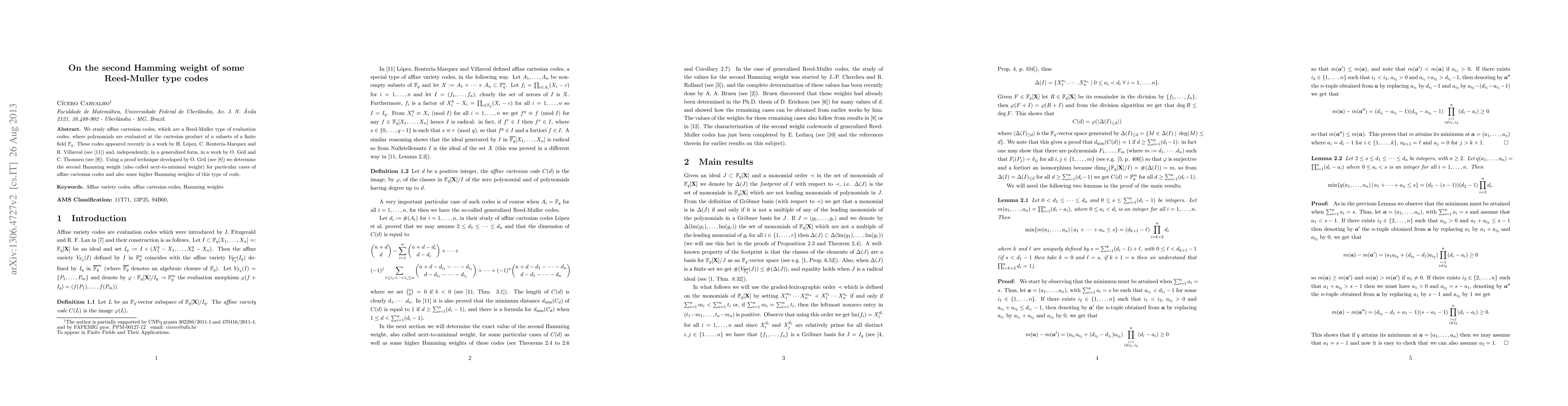 This paper investigates affine Cartesian codes, a subtype of Reed-Muller codes, focusing on their evaluation at n subsets of a finite field. It employs Gröbner basis theory to determine the second Hamming weight and higher Hamming weights for specific instances of these codes.