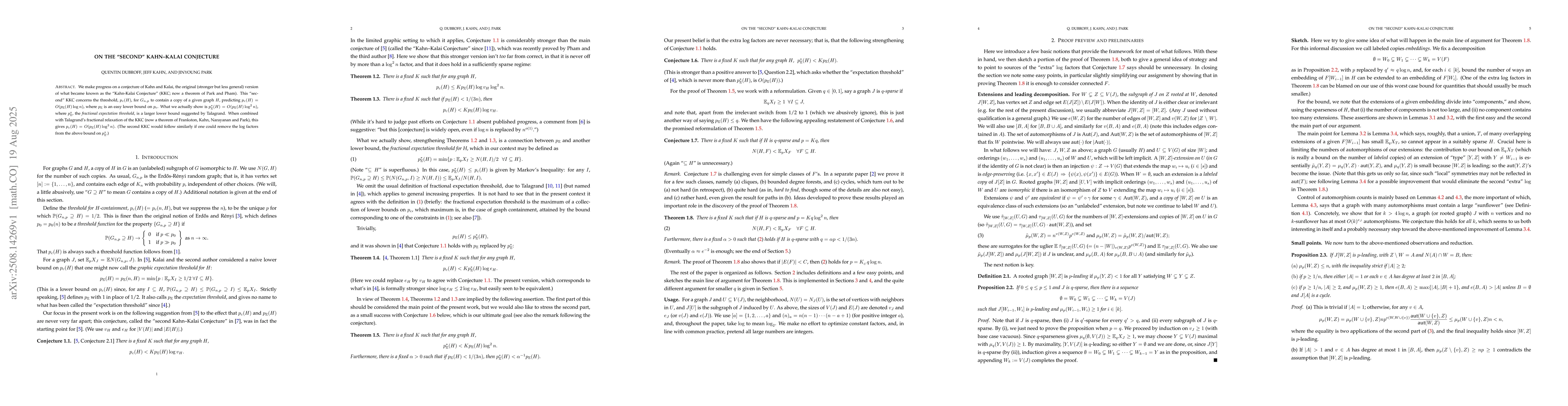 The paper builds upon the Kahn-Kalai Conjecture, specifically addressing its 'second' version concerning the threshold for $G_{n,p}$ to contain a copy of a given graph $H$. The authors show that $p_{\mathbb{E}}^*(H)=O(p_{\mathbb{E}}(H)\log^2n)$, leading to $p_c(H)=O(p_{\mathbb{E}}(H)\log^3n)$ when combined with Talagrand's fractional relaxation.