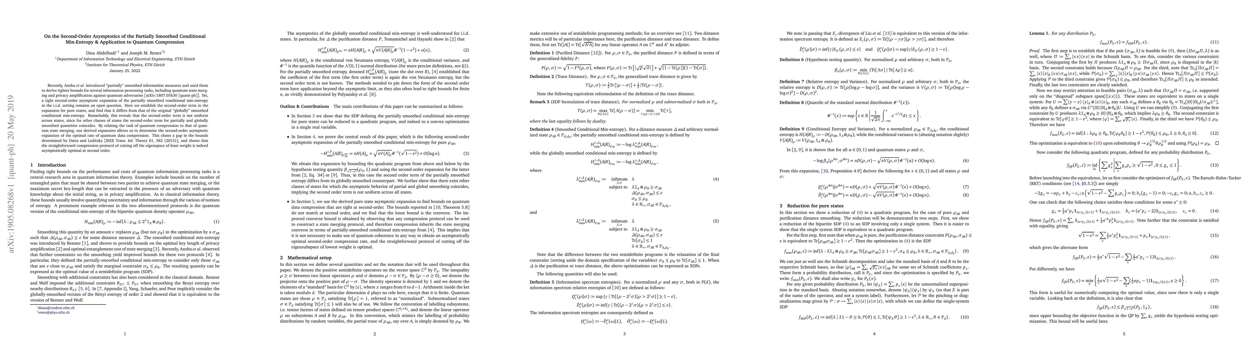 Recently, Anshu et al. introduced "partially" smoothed information measures and used them to derive tighter bounds for several information-processing tasks, including quantum state merging and privacy amplification against quantum adversaries [arXiv:1807.05630 [quant-ph]]. Yet, a tight second-order asymptotic expansion of the partially smoothed conditional min-entropy in the i.i.d. setting remains an open question. Here we establish the second-order term in the expansion for pure states, and find that it differs from that of the original "globally" smoothed conditional min-entropy. Remarkably, this reveals that the second-order term is not uniform across states, since for other classes of states the second-order term for partially and globally smoothed quantities coincides. By relating the task of quantum compression to that of quantum state merging, our derived expansion allows us to determine the second-order asymptotic expansion of the optimal rate of quantum data compression. This closes a gap in the bounds determined by Datta and Leditzky [IEEE Trans. Inf. Theory 61, 582 (2015)], and shows that the straightforward compression protocol of cutting off the eigenspace of least weight is indeed asymptotically optimal at second order.