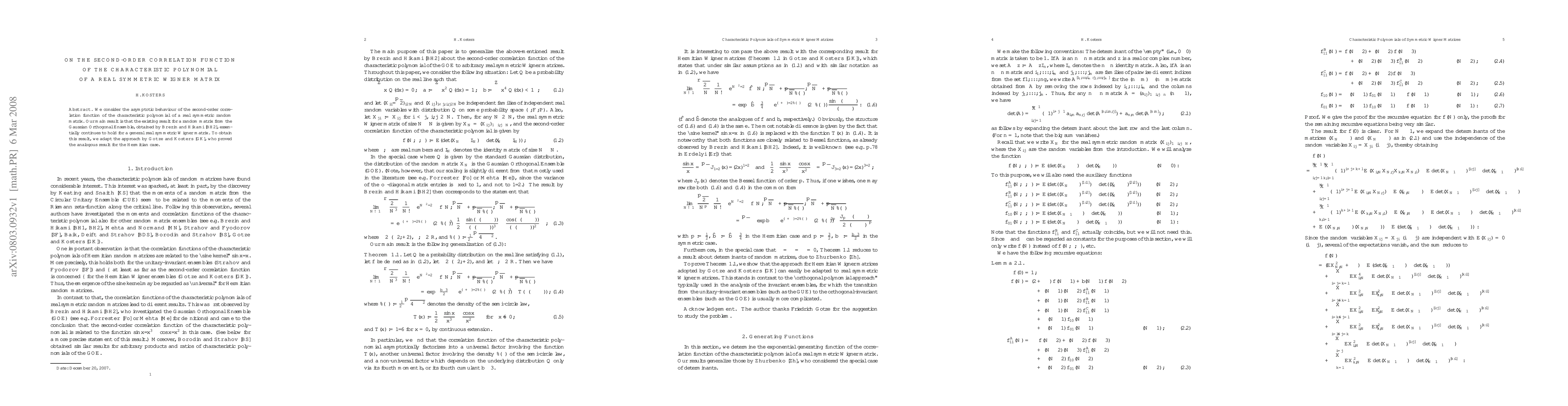 Summary: This paper investigates the asymptotic behavior of the second-order correlation function of the characteristic polynomial of a real symmetric Wigner matrix, demonstrating that the results for Gaussian Orthogonal Ensemble matrices largely apply to general Wigner matrices.