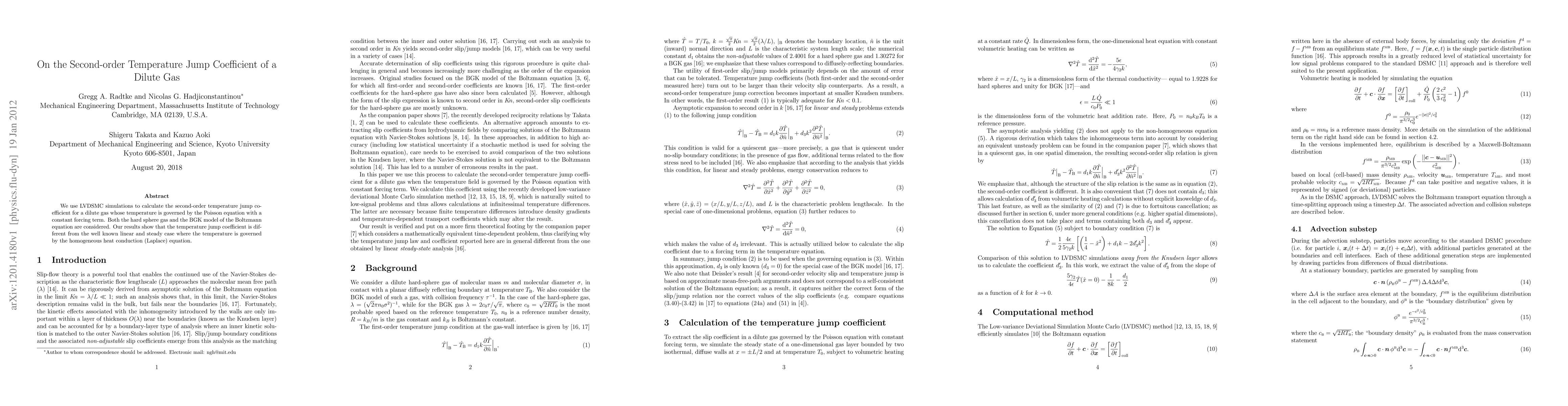 This paper uses LVDSMC simulations to determine the second-order temperature jump coefficient for dilute gases, comparing hard sphere gas and BGK model results. Findings reveal a deviation from the linear temperature jump coefficient in the context of homogeneous heat conduction.
