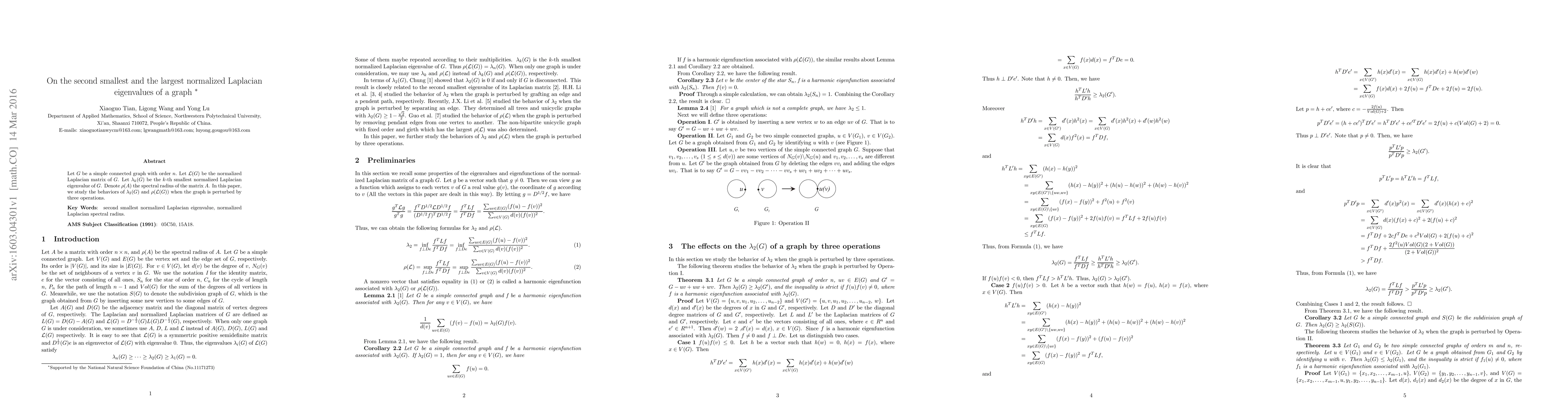 Let $G$ be a simple connected graph with order $n$. Let $\mathcal{L}(G)$ be the normalized Laplacian matrix of $G$. Let $\lambda_{k}(G)$ be the $k$-th smallest normalized Laplacian eigenvalue of $G$. Denote $\rho(A)$ the spectral radius of the matrix $A$. In this paper, we study the behaviors of $\lambda_{2}(G)$ and $\rho(\mathcal{L}(G))$ when the graph is perturbed by three operations.