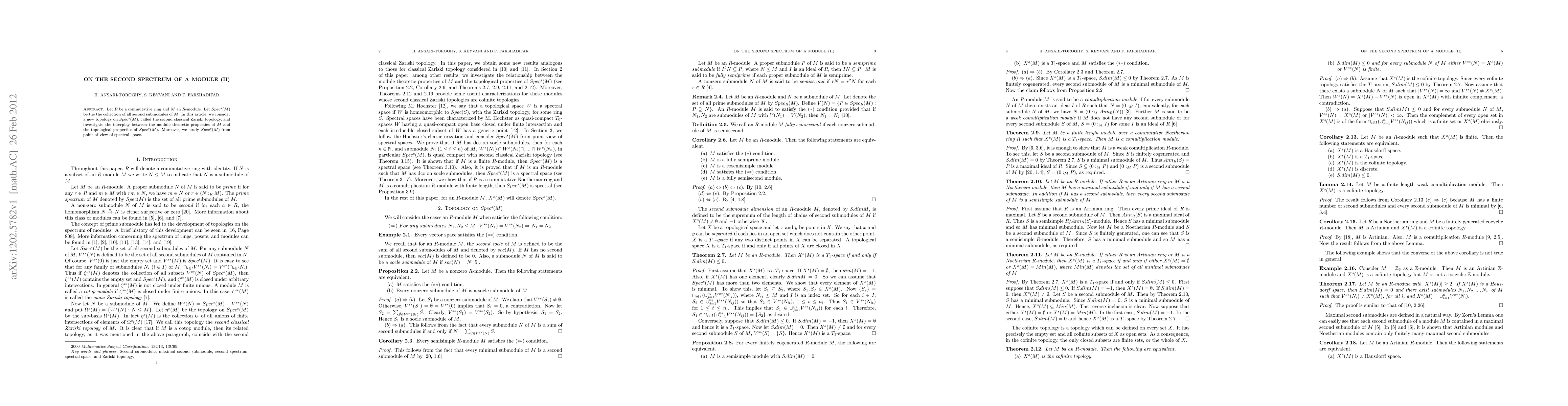 This research introduces the second classical Zariski topology on Spec^s(M), the set of second submodules of an R-module M. It explores the relationship between module properties and topological features of Spec^s(M), also examining it through the lens of spectral spaces.