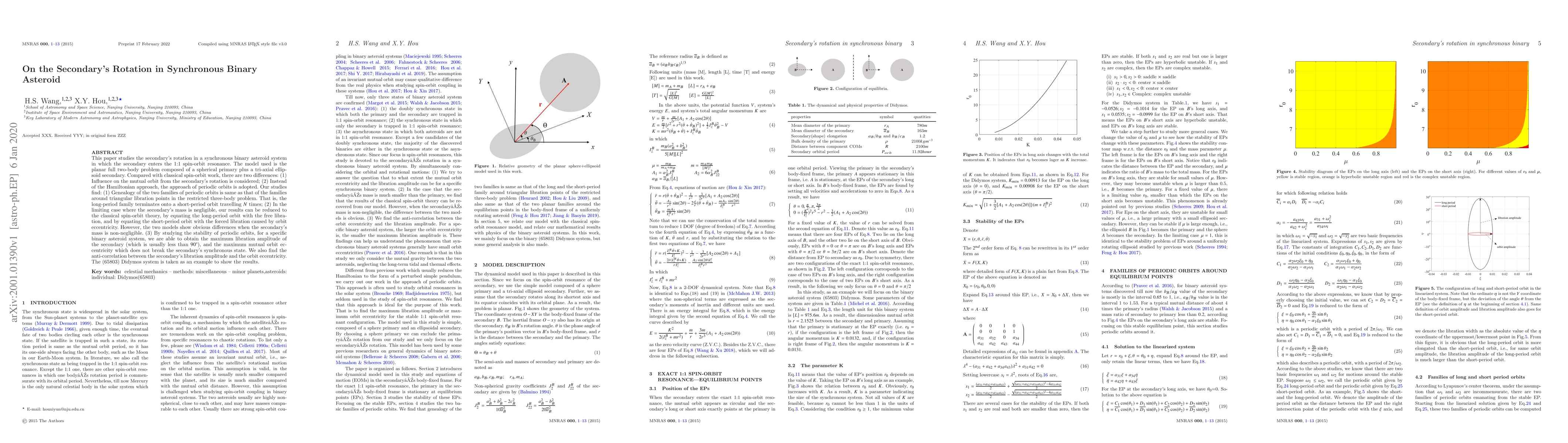 This paper investigates the secondary's rotation in a synchronous binary asteroid system entering 1:1 spin-orbit resonance using a planar full two-body problem model. It finds similarities in the periodic orbit genealogy to those in the restricted three-body problem and identifies differences in spin-orbit dynamics when the secondary's mass is significant, alongside determining maximum libration amplitude and mutual orbit eccentricity for the (65803) Didymos system.