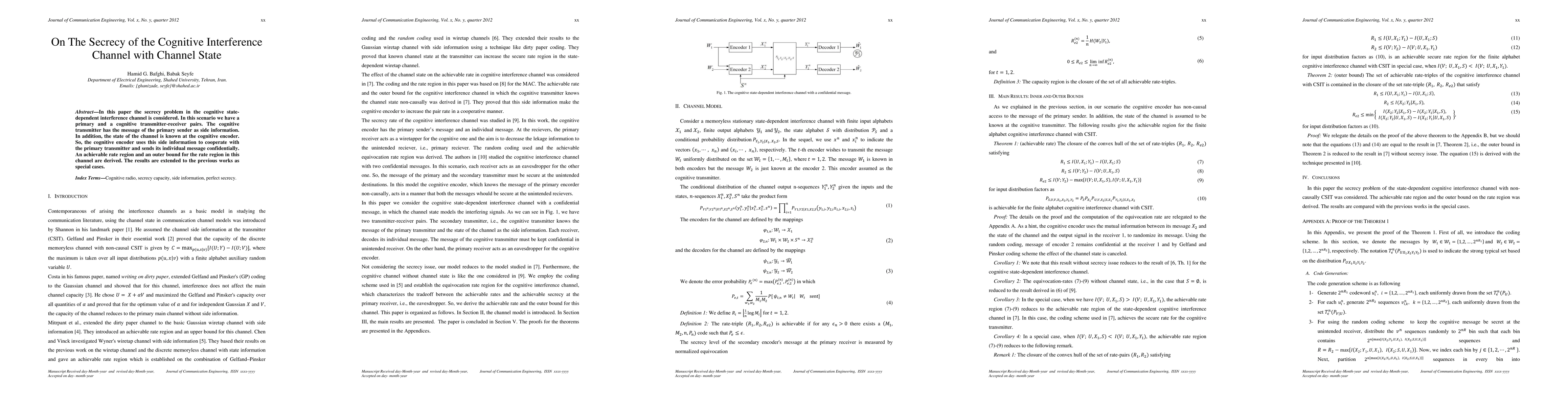 This paper investigates the secrecy of a cognitive interference channel where the cognitive transmitter has side information about the primary sender's message and the channel state is known to the cognitive encoder. It derives an achievable rate region and an outer bound for the rate region, extending previous results.