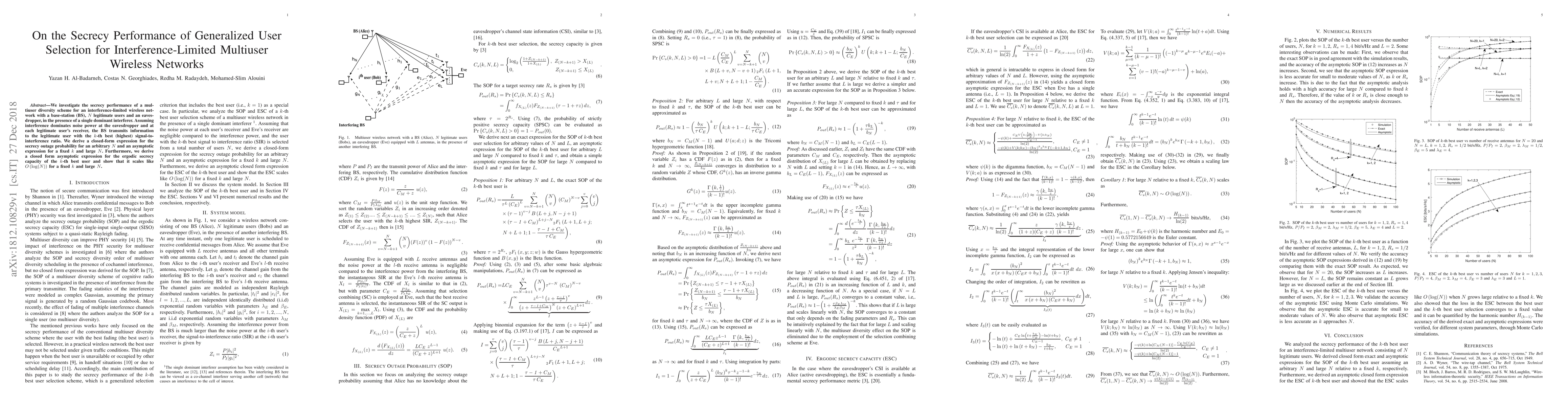 Researchers investigated the secrecy performance of a multiuser diversity scheme in an interference-limited wireless network, finding that the ergodic secrecy capacity scales like $O( ext{log}(N))$ for large $N$.