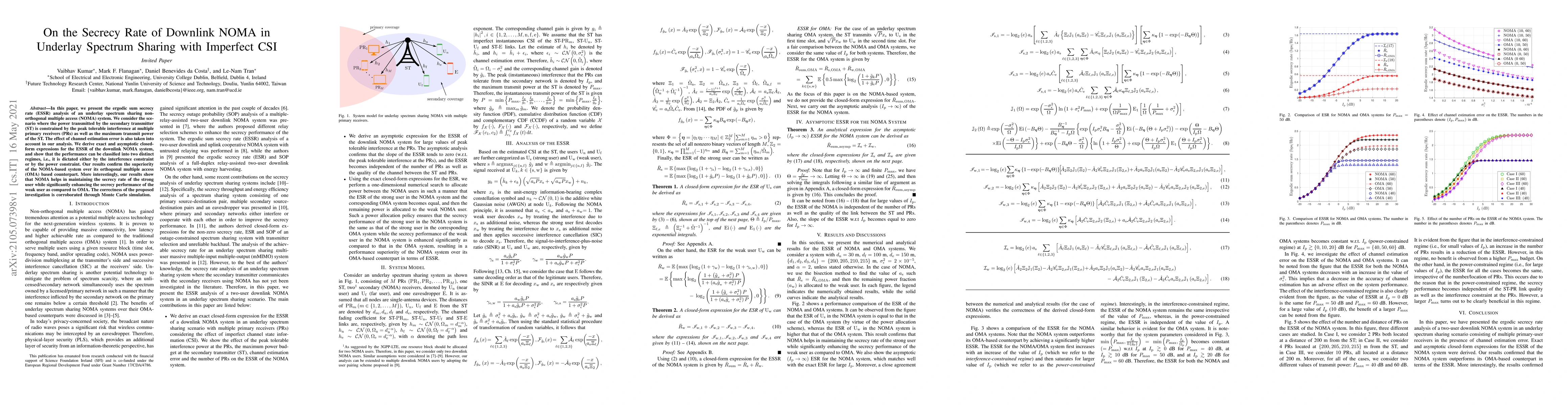This paper analyzes the ergodic sum secrecy rate (ESSR) in an underlay spectrum sharing NOMA system with imperfect channel state information (CSI). It reveals that NOMA outperforms OMA, maintaining the strong user's secrecy rate while significantly improving the weak user's secrecy performance, validated by Monte Carlo simulations.