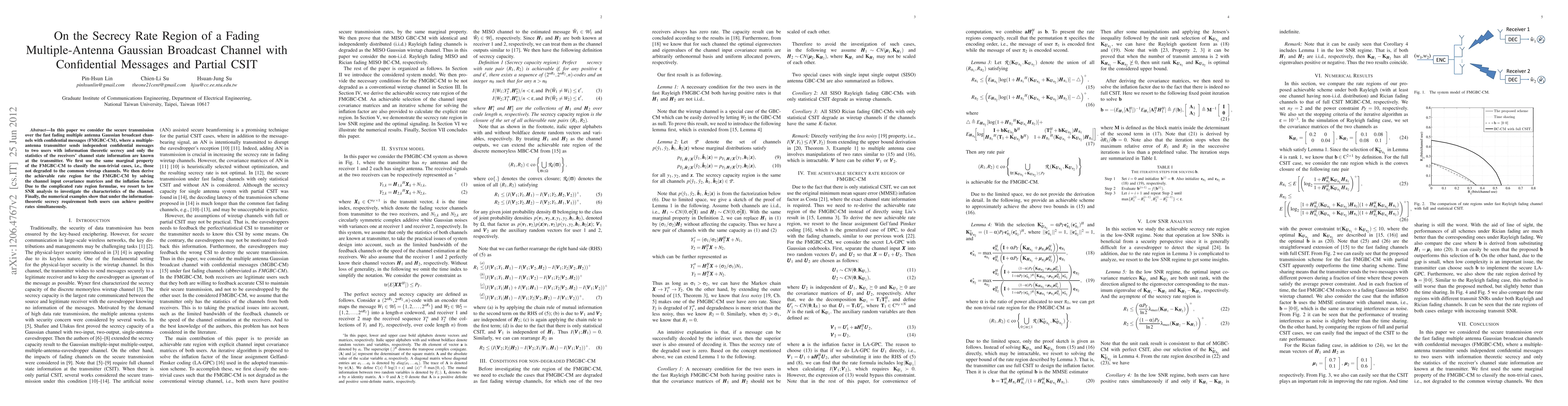 This paper investigates the secure transmission in a fast fading multiple-antenna Gaussian broadcast channel with confidential messages and partial channel state information at the transmitter. It derives the achievable rate region for the channel and demonstrates that both users can achieve positive secrecy rates simultaneously under low SNR conditions.