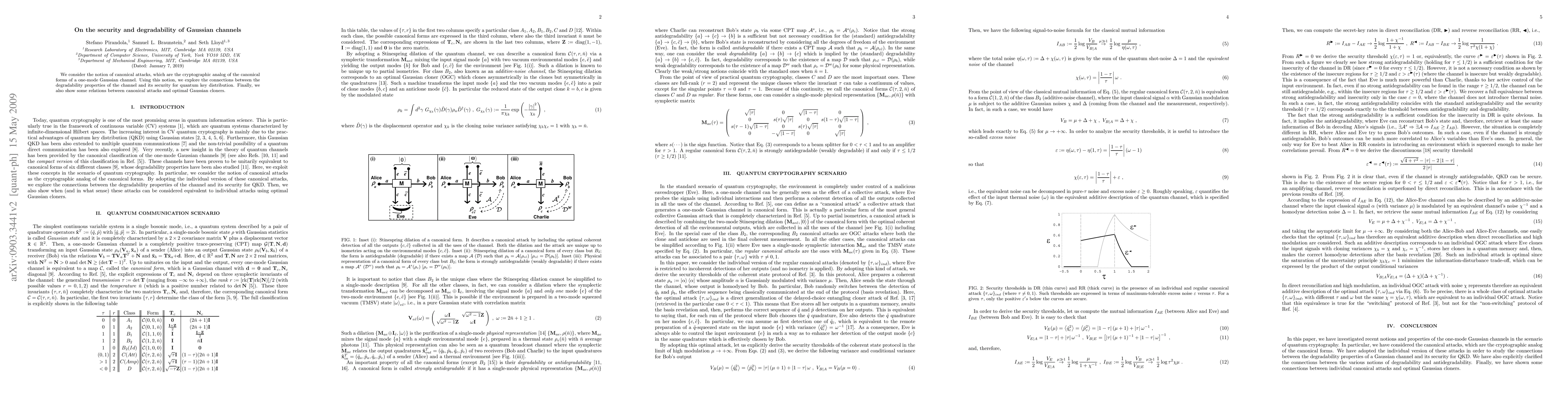 This paper explores the security of Gaussian channels against canonical attacks, examining the link between channel degradability and security in quantum key distribution, and discusses the relationship between canonical attacks and optimal Gaussian cloners.