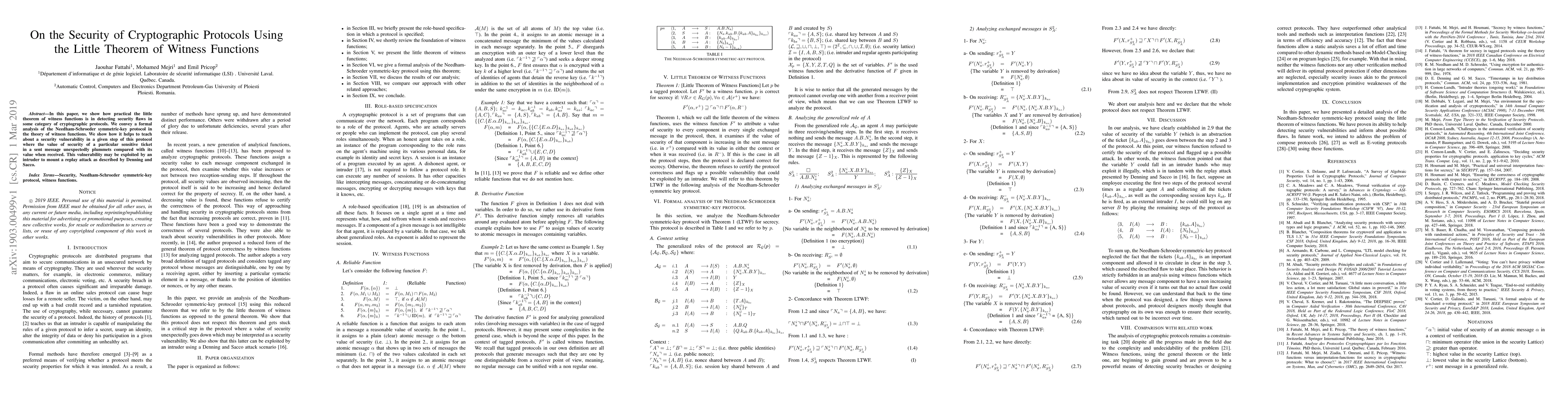 This paper demonstrates the practical application of the little theorem of witness functions in identifying security flaws in cryptographic protocols, specifically analyzing the Needham-Schroeder symmetric-key protocol. It reveals a vulnerability where a sensitive ticket's security value drops unexpectedly, potentially enabling replay attacks.