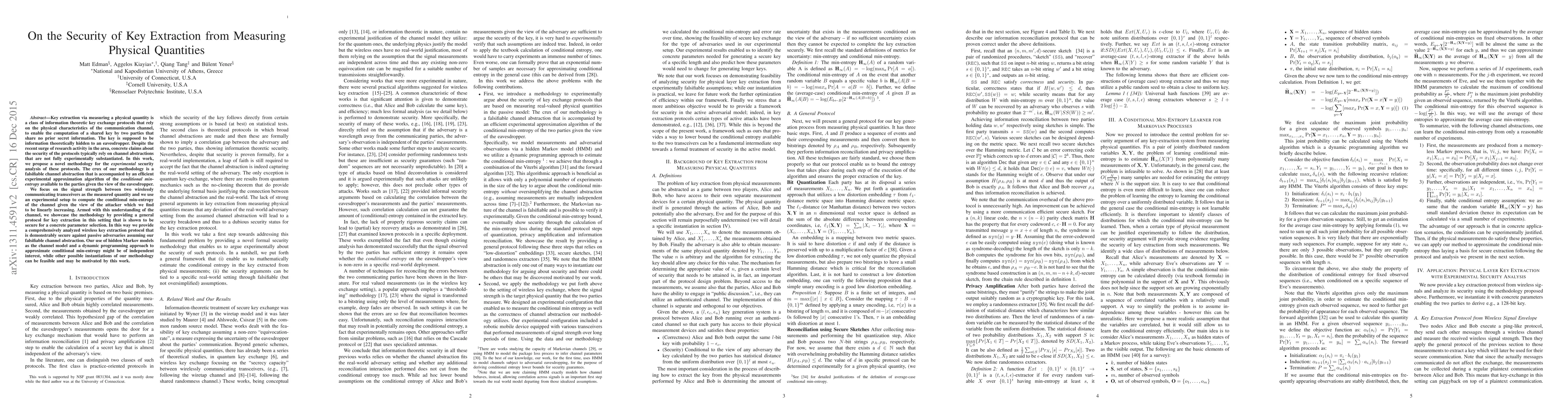 Researchers develop a new method to experimentally analyze security of key extraction protocols using physical quantities like signal strength, finding them vulnerable to passive attacks. They provide a secure protocol for wireless key exchange that is demonstrably secure against eavesdroppers.
