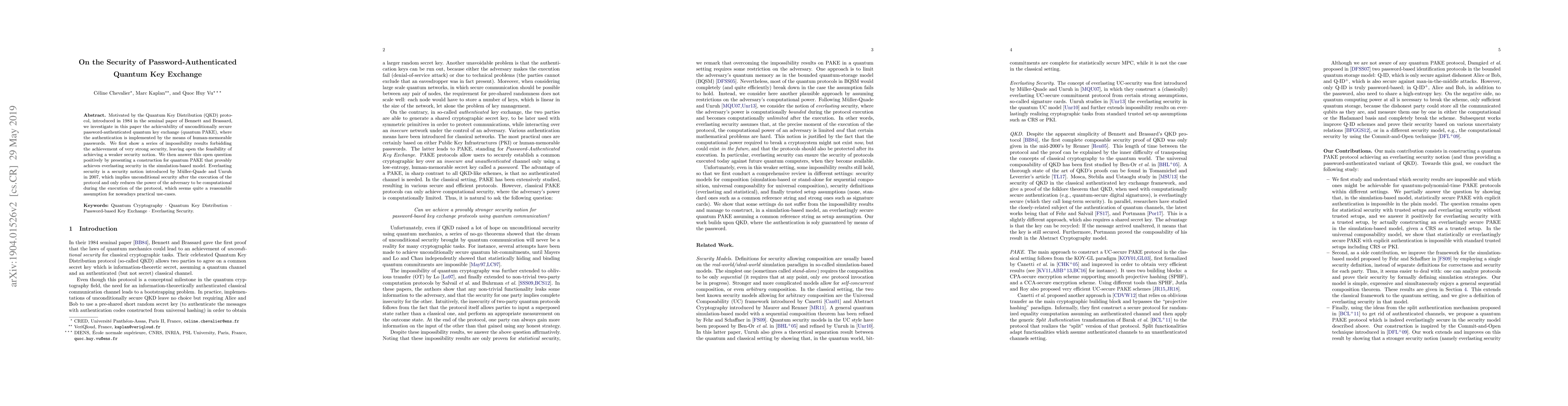 This paper explores the feasibility of unconditionally secure password-authenticated quantum key exchange (quantum PAKE) using human-memorable passwords. It concludes with a construction that achieves everlasting security, implying unconditional security post-execution with computational adversaries during the protocol.