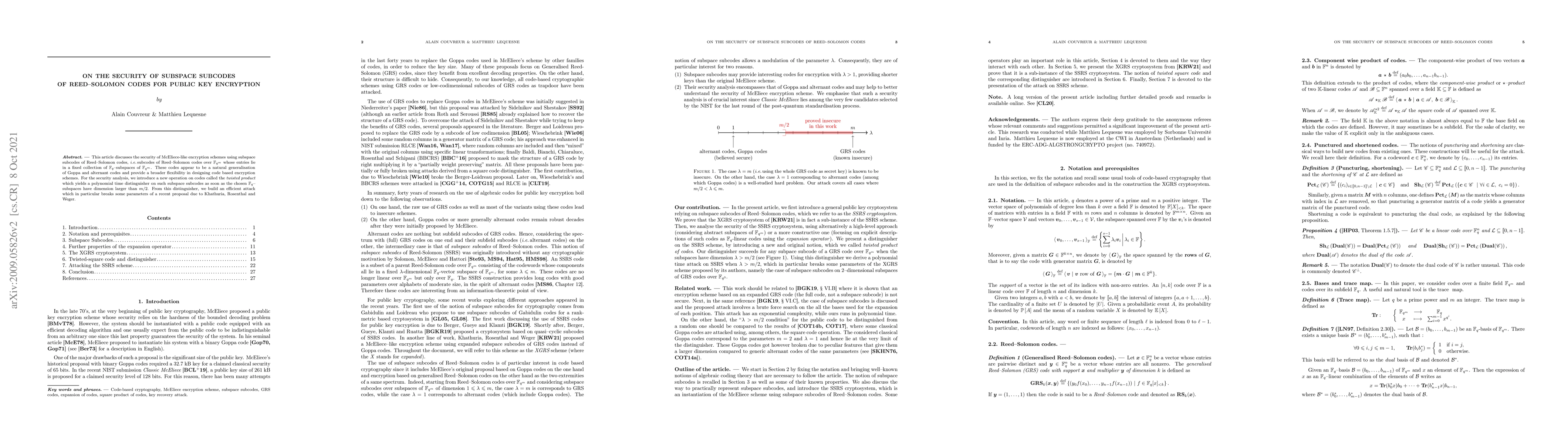 This paper examines the security of McEliece-like encryption schemes based on subspace subcodes of Reed-Solomon codes, introducing a new polynomial time distinguisher that breaks security when the subspace dimension exceeds half the field size. The study also demonstrates an efficient attack against some parameters of a recent encryption proposal.