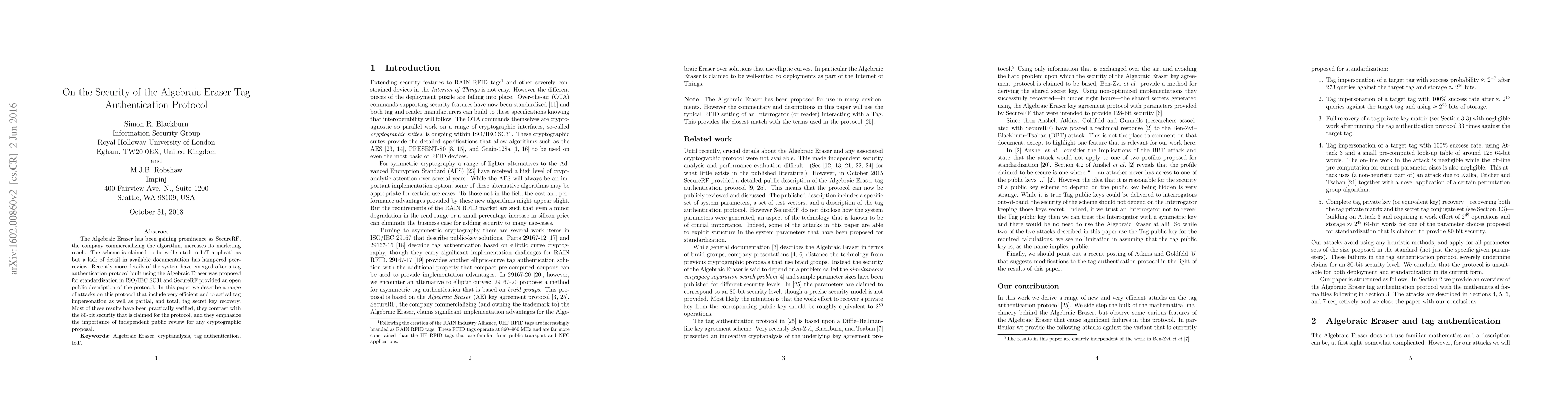 The Algebraic Eraser has been gaining prominence as SecureRF, the company commercializing the algorithm, increases its marketing reach. The scheme is claimed to be well-suited to IoT applications but a lack of detail in available documentation has hampered peer-review. Recently more details of the system have emerged after a tag authentication protocol built using the Algebraic Eraser was proposed for standardization in ISO/IEC SC31 and SecureRF provided an open public description of the protocol. In this paper we describe a range of attacks on this protocol that include very efficient and practical tag impersonation as well as partial, and total, tag secret key recovery. Most of these results have been practically verified, they contrast with the 80-bit security that is claimed for the protocol, and they emphasize the importance of independent public review for any cryptographic proposal.