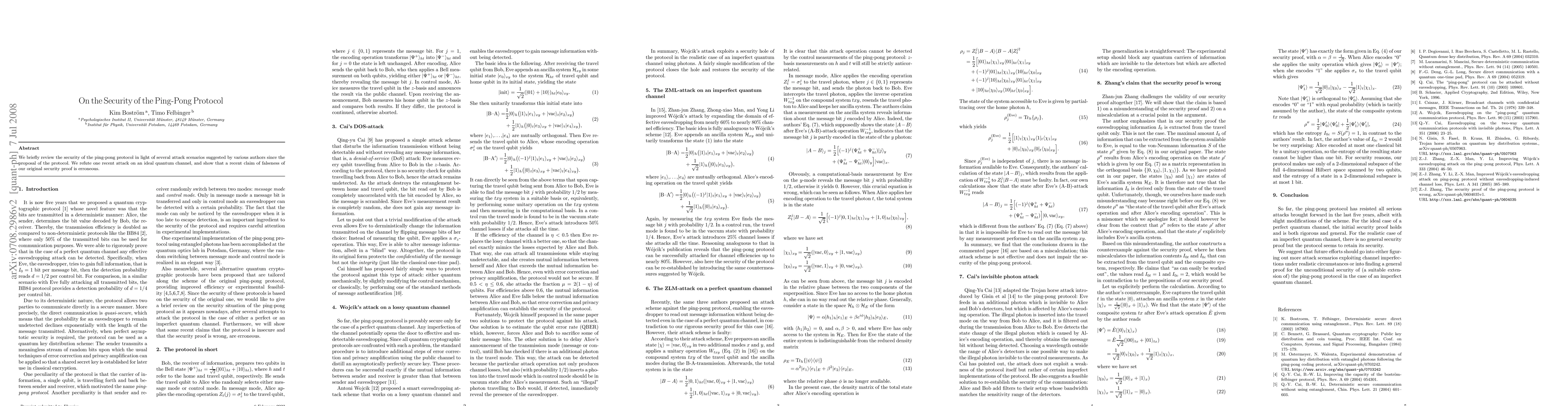 The research employed a combination of theoretical analysis and experimental verification to investigate the security of the ping-pong protocol.