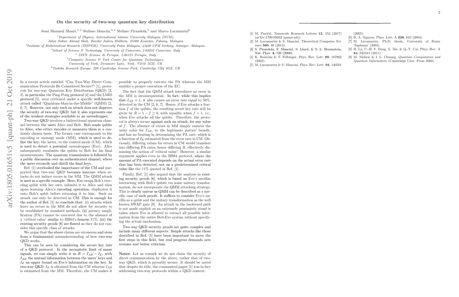 This paper refutes recent claims questioning the security of two-way quantum key distribution, arguing that the critique is based on a misunderstanding of the protocol's mechanisms, thereby invalidating the proposed attack strategies.