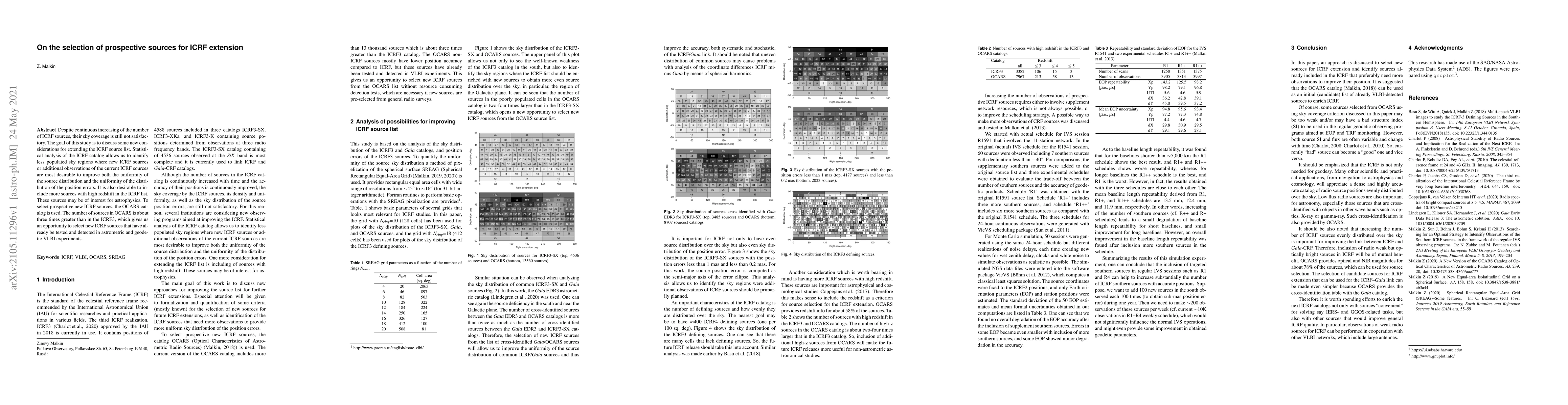 This study aims to extend the ICRF source list by identifying under-represented sky regions and high-redshift sources to enhance source distribution and error uniformity. The OCARS catalog, with three times more sources than ICRF3, is utilized to select prospective new ICRF sources that have already undergone astrometric and geodetic VLBI validation.